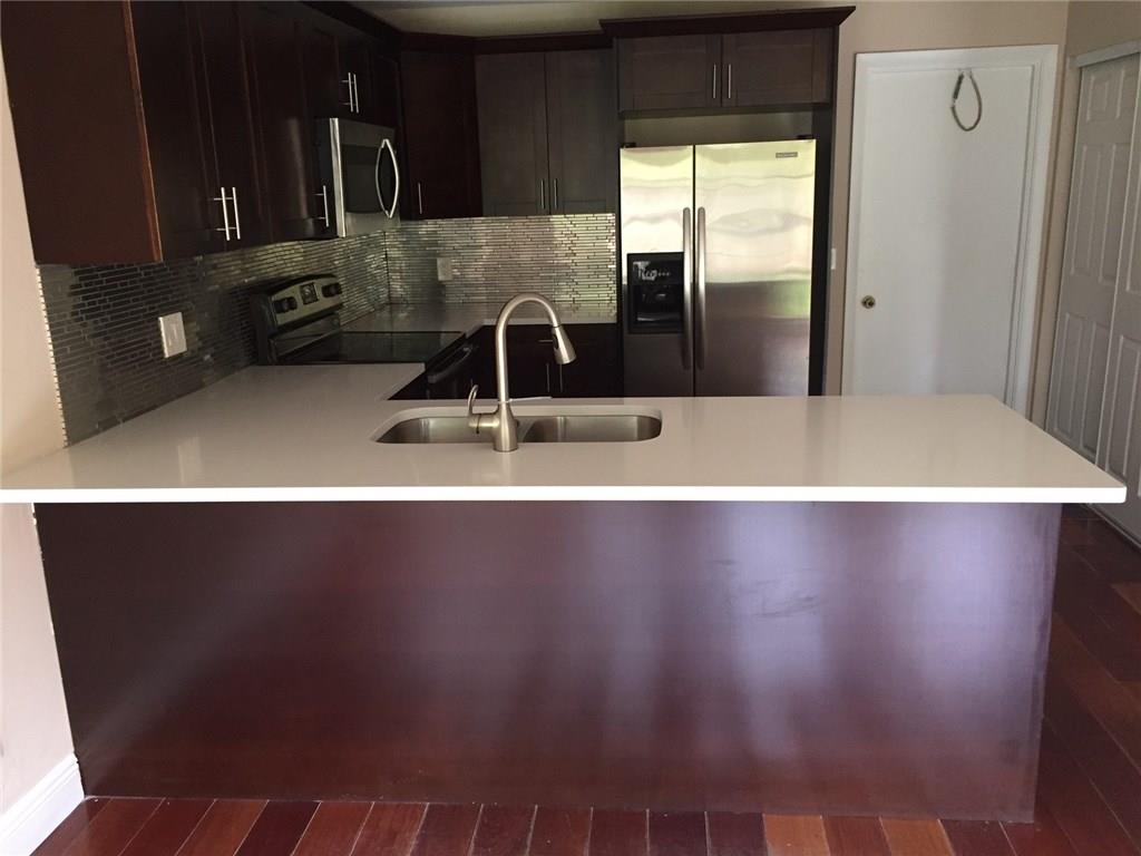 Upgraded home with brand new kitchen with quartz counter tops, stainless steel appliances. Open floor with hardwood and ceramic floors (no carpet mess here). Nice fenced in backyard.... home also has accordion shutters and extra storage shed in the backyard. Ideally located across the park and Tennis courts. Easy access to all major highways restaurants, A rated schools & Weston Town Center.