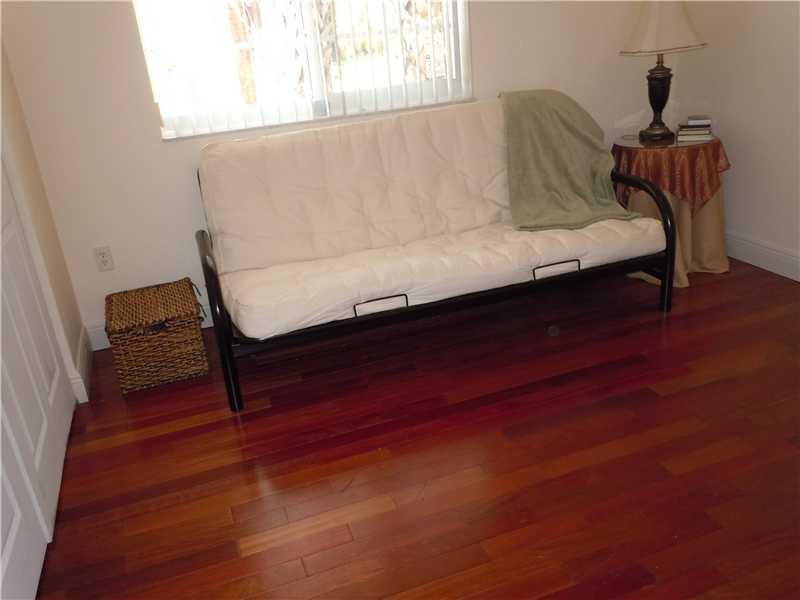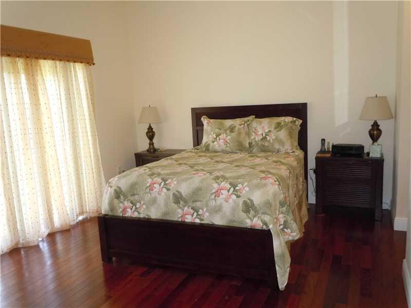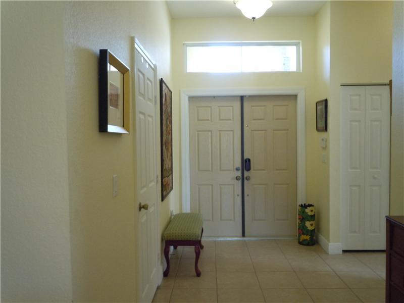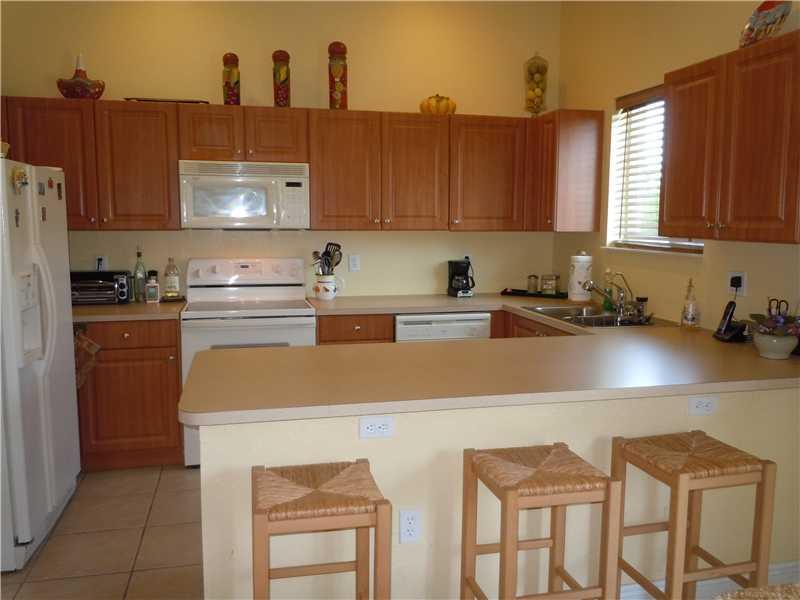 Stunning!! From the foyer, this home has an expression of simple elegance! Main living areas feature tile flooring while the 4 bedrooms feature REAL Cherry wood flooring. Upgraded Kitchen cabinets, lots of counter space and a great family snack counter. A ll HURRICANE IMPACT windows and French Doors in Family Room & Master Bedroom lead out to a full sized, fenced yard with peaceful, lake front views. This model in a gated community, offers a 3 way bedroom split & laundry room.
