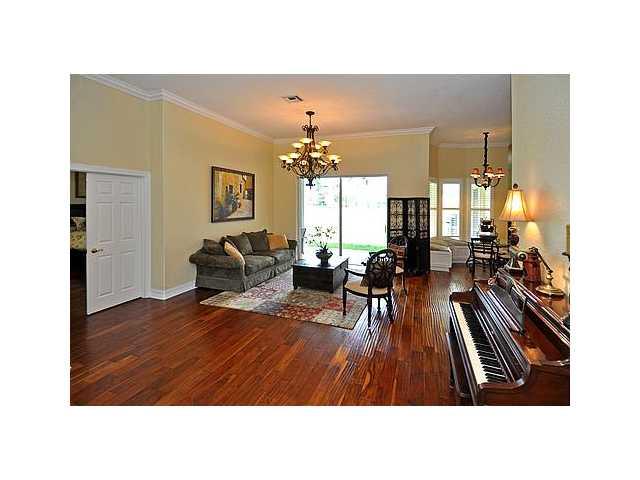 BEAUTIFUL 5/3/3, ACRE HOME LOCATED IN LOVELY, GATED CARLTON RANCHES. OVER $100,000 IN UPGRADES. SOLID BRAZILIAN MAHOGANY DOUBLE FRONT DOORS. HANDSCRAPED TEAK HARDWOOD FLOORS, GRANITE KITCHEN, STAINLESS APPLIANCES,HUGE PANTRY, CROWN MOLDING, MARBLE MASTER BATH WITH WOOD CABINETS. CORNER ACRE LOT. COMPLETELY FENCED IN AND PRIVATE OVERLOOKING LAKE. IMPACT WINDOWS/ACCORD SHUTTERS. BRAND NEW AC, NEWER PLUMBING, CUSTOM CLOSETS, TRIPLE SPLIT PLAN, 5TH BR BEING USED AS OFFICE. MAINT INCL HI SPEED INTERNET & CABLE