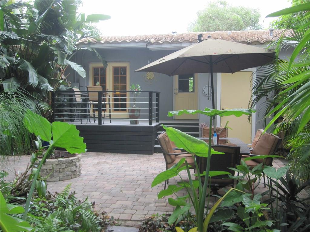 Curb appeal and charm describe this adorable home.This home is comfy and truly tropical and feels bigger than it is. The current owner has gone the extra mile to make this home special. Nothing needs to be done. The roof was done in 2007. Remodeled kitchen with black granite counter tops and SS appliances. Open floor plan with French doors that open up out to a spectacular and unmatched backyard. The backyard has a Key West style outside 2nd shower. The inside bathroom is updated as is the lighting.