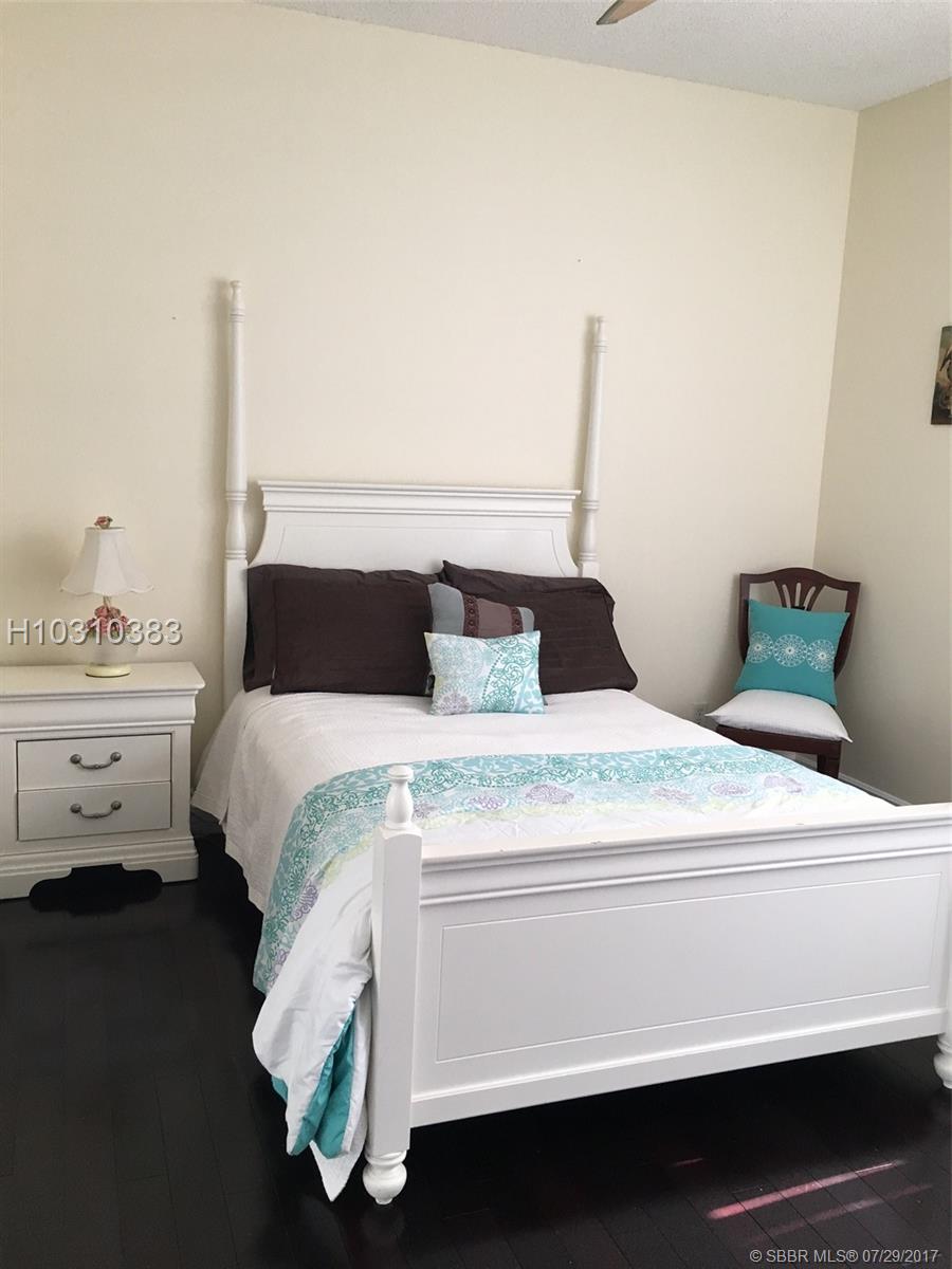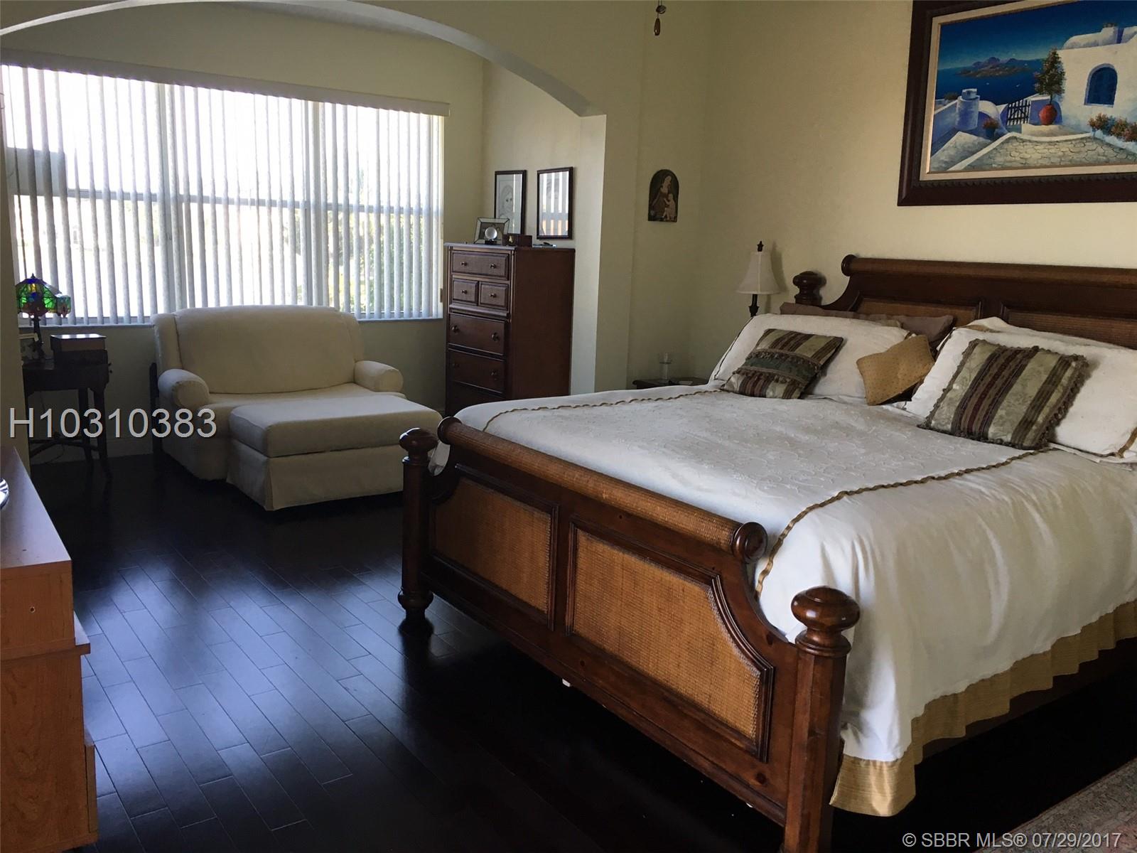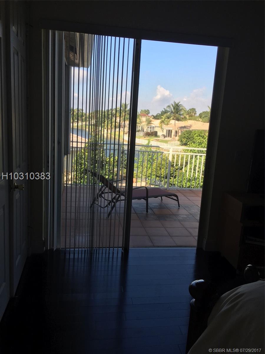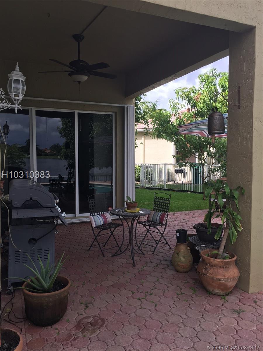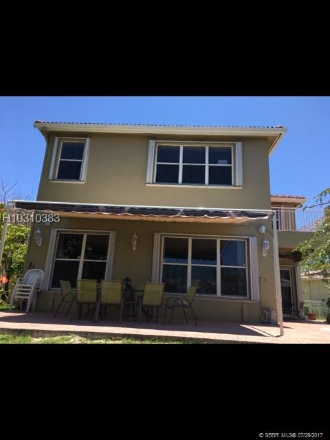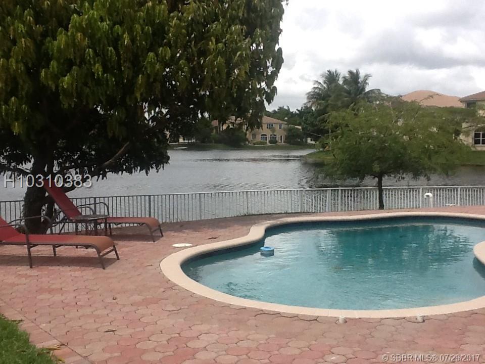 This Elegancia model Will NOT last!. Cul-de-sac, wide wraparound lake view, pool, covered patio PLUS additional patio with retractable awning. Large updated kitchen is the heart of this home and open spaces makes it perfect for entertaining or just relaxing; guest or in-laws bedroom and bathroom downstairs. Large and inviting master bedroom with sitting area and balcony with the view of the lake. Good size bedrooms. Accordion shutters, fruit trees. Close to restaurants, shopping, hospitals and major highways. Dogs may have a breed restriction as per Broward County. HOA includes common areas, community pool and gate security.
