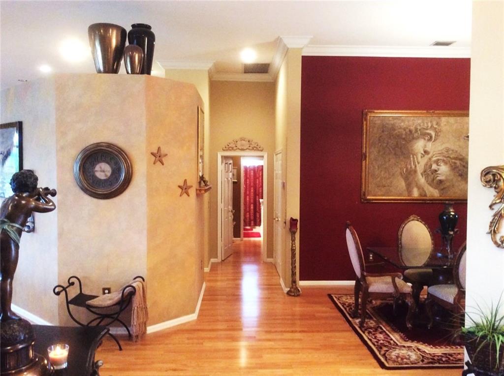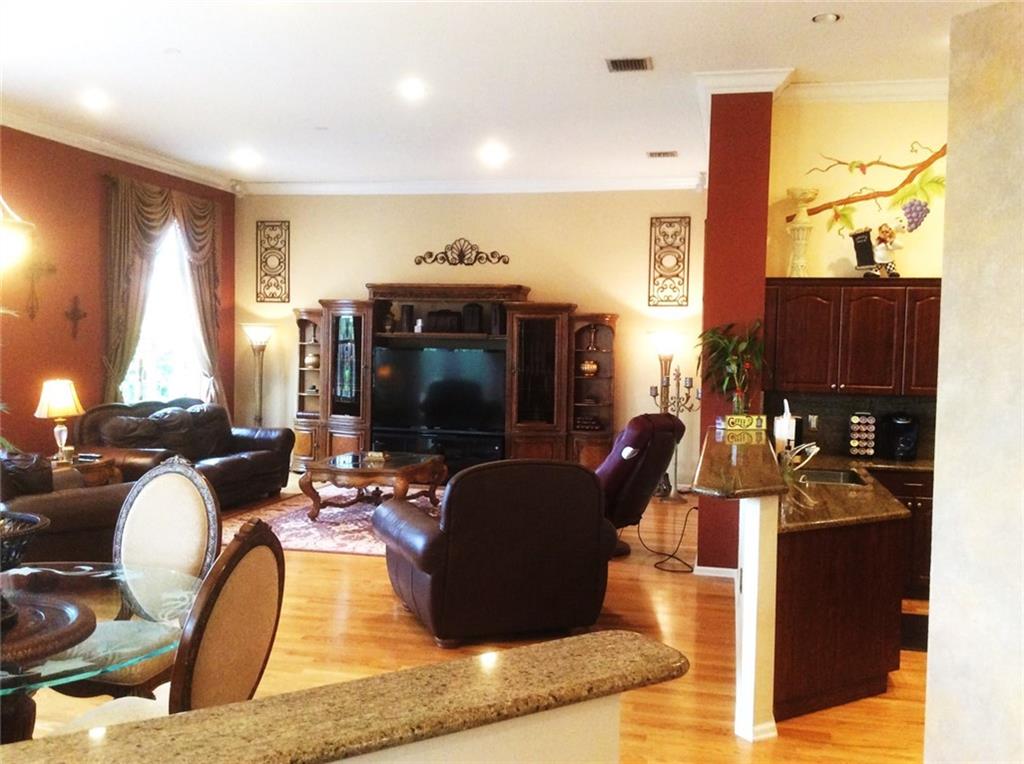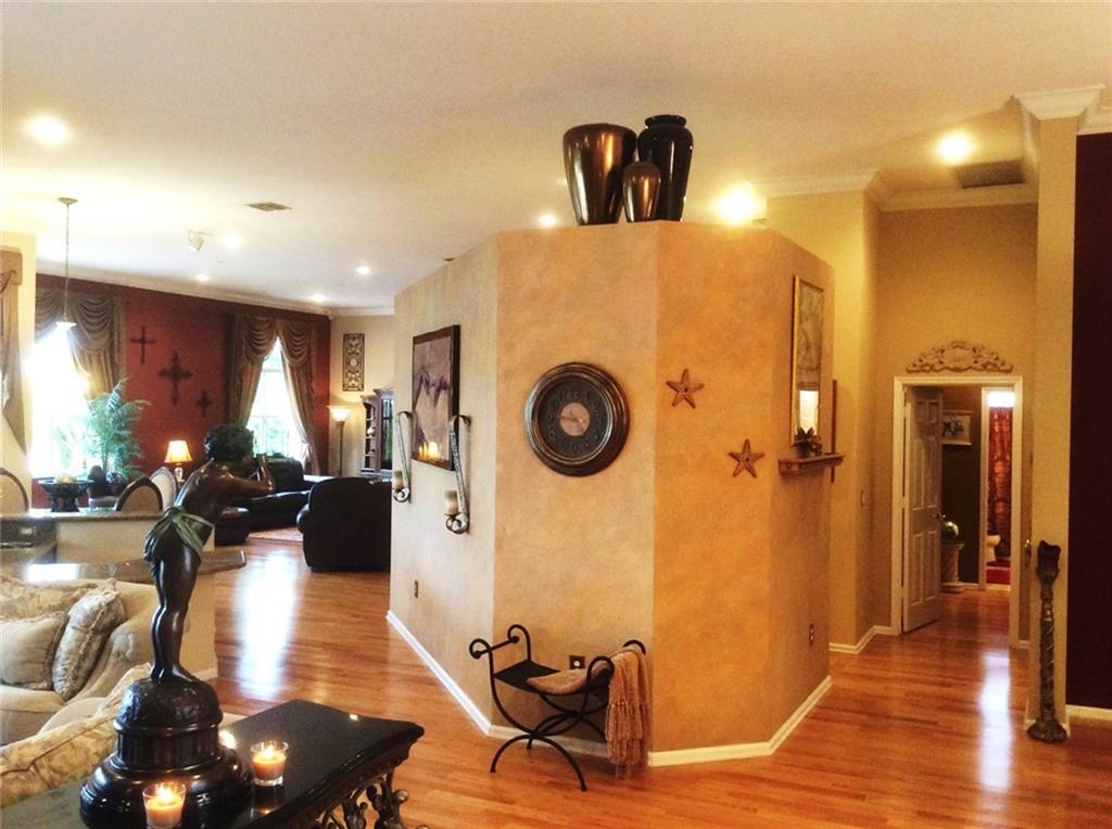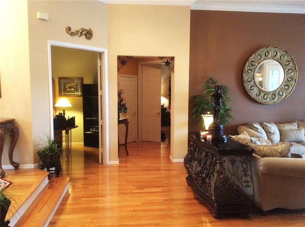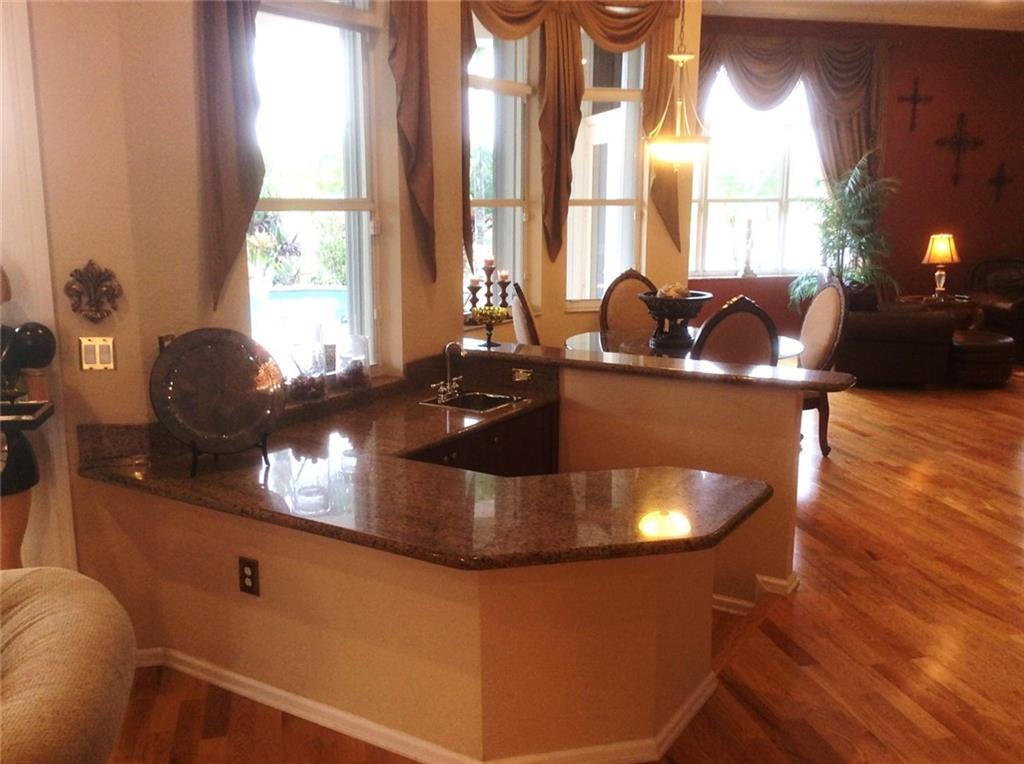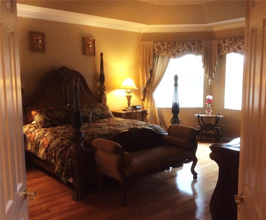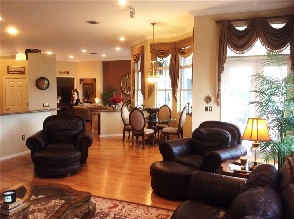 Tastefully constructed featuring a lake front lot, relaxing pool with a water fall overlooking lake, covered outdoor entertaining space, 3 car garage, split floor plan - 5 bed/4 bath, high ceilings, hardwood floors, marble counters, stainless appliances, large pantry, surround sound, fitness room, alarm, huge master suite, walk in closets, dining room, living room, family room, office, wet bar, custom window treatments. Motivated Seller - priced for quick sell!!! $2,500 Buyer's Broker Bonus!!!