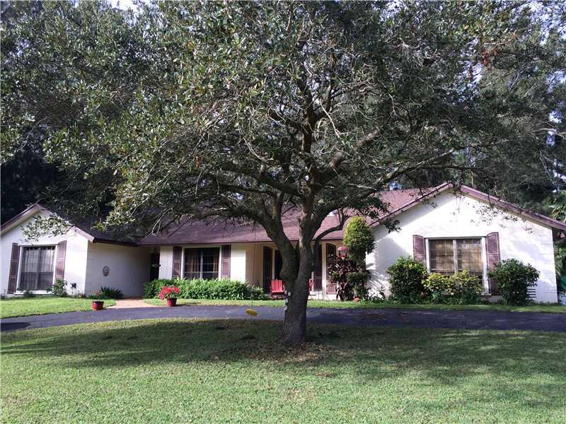 TUCKED AWAY & HIDDEN IN ONE OF DAVIE'S PREMIER COMMUNITIES...MARTHA BRIGHT FARMS! COUNTRY LIVING IN A HORSE FRIENDLY COMMUNITY W/NO "HOA". CENTRALLY LOCATED W/EASY ACCESS TO TREE TOPS PARK.NESTLED ON A BUILDER'S ACRE,INCLUDES 3 BEDROOMS,2 BATHS W/2 CAR GA RAGE, CHICAGO BRICK FIREPLACE,UPDATED KITCHEN W/REAL WOOD CABINETS,CENTER ISLAND& S/S APPL PACKAGE.HUMONGOUS GLASS ENCLOSURE/FLORIDA ROOM (W/SEPERATE A/C),BUILT-IN SPA &JENNAIR GRILL. NEWER ROOF, PLENTY OF ROOM FOR A POOL, BARN AND/OR TENNIS CT.