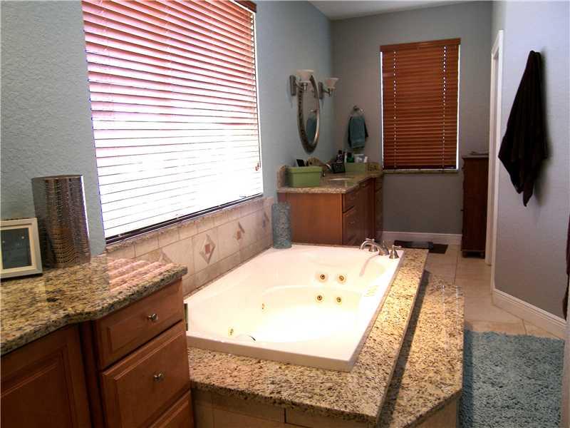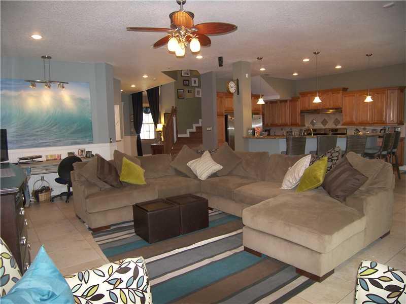JUST REDUCED! 2005 beautiful well presented 4BR/2.5 BA home with tropical oasis backyard ,heated pool & swim-out tanning ledge. Waterview from balcony. Playroom & large den which could easily convert into bedroom 5. Modern kitchen w/ 2 stove top ovens. V ery spacious master, his & her walk-in closets. Jacuzzi tub & walk in shower with separate dual sinks. This is a must see home with new a/c units, steel roof 8 yrs old & new pool heater. See attachment for many many more upgrades! Seeing is believing!
