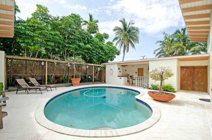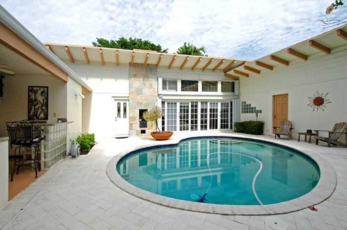 Beach style in fantastic beach community of Hillsboro Shores. Private access to beach right off of Hillsboro Inlet. True 3/3 plus one car garage. Courtyard pool area plus separate patio with original Old Chicago brick. Real wood burning fireplace, gas hot water heater and stove. Kitchen is open but small, typical of a beach house. Split bedrooms. Third bedroom separate from rest of house for great privacy. Enjoy cooking out by pool, heated no less! Price reflects home needs some TLC, updating!