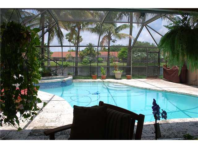 Beautiful, ready-to-move-into 4 Bdrm, 2 1/2 Bath 1 story pool home on a lake. Home has upgraded kitchen appliances, wood burning fireplace, Pergo Koa 5" wide board wood-laminate floors in main living areas, 2 car garage, huge screened patio / heated pool with spa, laundry room with sink, hurricane shutters, S-tile roof, owner owned burglar alarm, and satellite dish. Freezer in garage does not stay. Weston is your home town - great schools - rec areas - parks - nearby Sawgrass Mills Mall. A home for you!