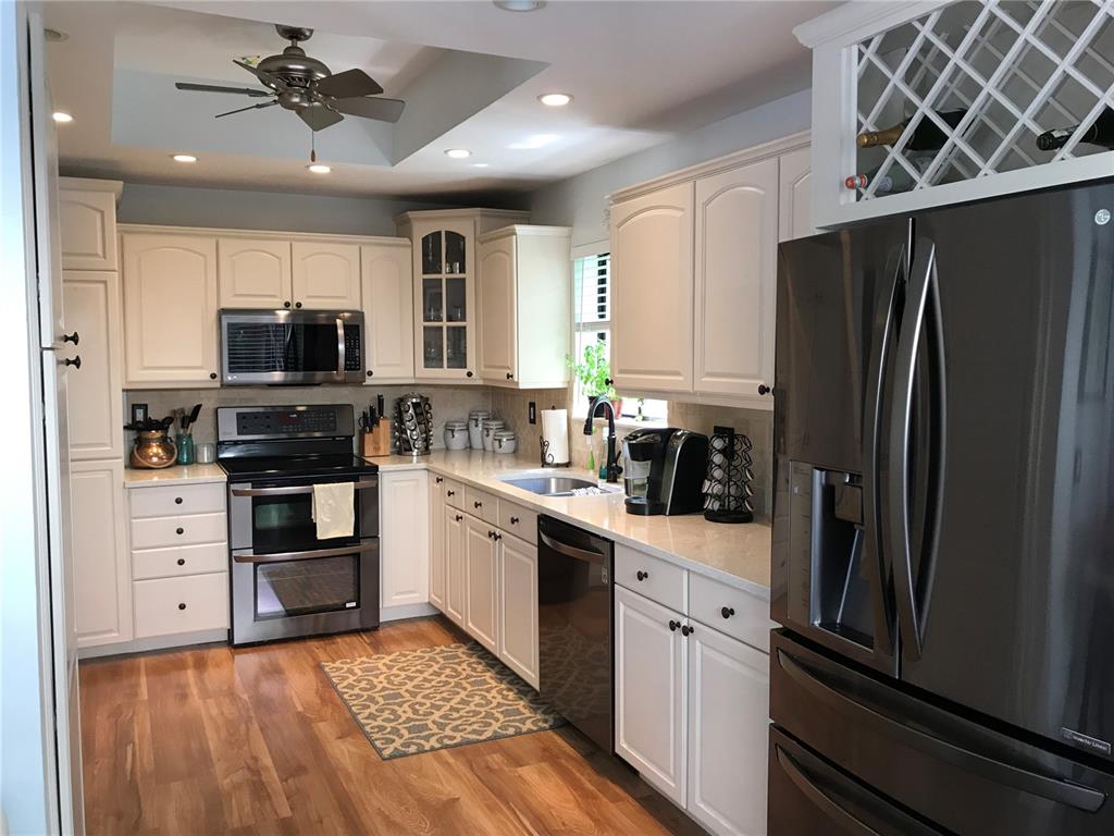 Beautiful home in "Le Cristal" at Rock Creek. Move-in ready and done beautifully. This 4 bedroom, 3.5 bath pool home has a new kitchen with stainless steel appliances, quartz counter tops, new bathroom vanities, laminate floors throughout entire home, tile flooring in bathrooms and sits on an oversized, corner lot! Tranquil & private backyard with paved pool area, canopy, & play area, perfect for entertaining! Rock Creek offers all the amenities you could ever need, play ground & exercise areas sprinkled a
