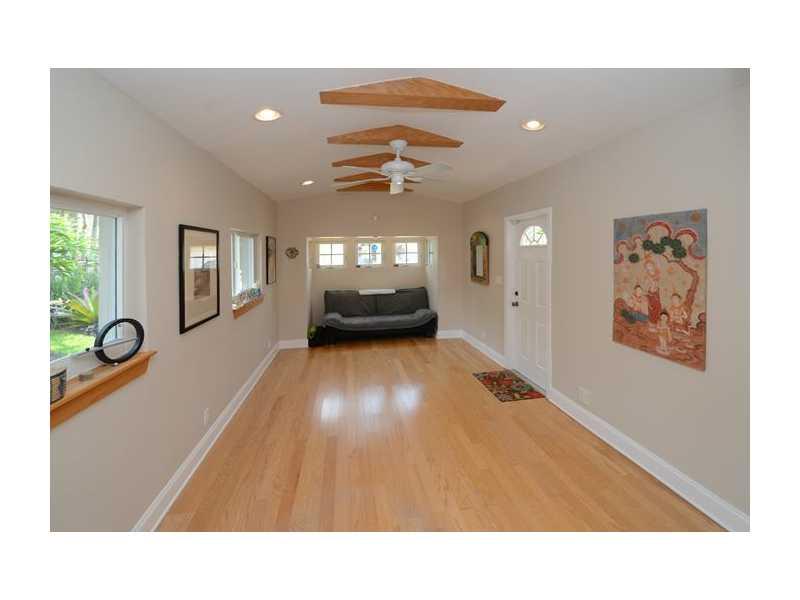 Contemporary 4BR/2.5BA offers a sought-after open floor plan with a modern, open kitchen, impact windows/doors, a fireplace and private, fenced yard with resort-style heated pool and brick terrace. Colorful tropical gardens surround the homes entry and le ad to a welcoming front porch. The quad-split bedroom design offers privacy and flexibility of use. Interior space is ideal for entertaining with public rooms flowing one to the next and opening onto the pool.
