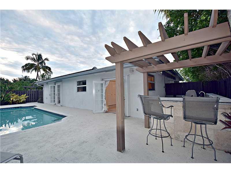 Beautiful Imperial Point Pool Home, well manicured gardens, oversized corner lot, fantastic pool area with south exposure, outdoor kitchen and shower, separate yard, bright and open living room area excellent for entertainment, dual master suites with lot s of natural light, French doors, neutral tile throughout, spacious kitchen with separate laundry/utility room, accordion shutters, newer roof, two car garage with circular driveway.