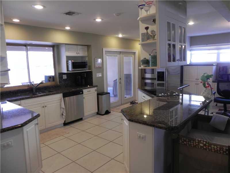 Beautifully renovated 3/2 family home with spacious open kitchen complete with granite counter tops and floating cabinets. Stainless steel appliances include a double oven and island range. Double doors lead to huge patio for entertaining and child-gate d pool. Bay window in living room and a bonus room right off kitchen can be an office or play area. Everything has been redone including electrical and new windows with hurricane shutters. Lots of extra closets and storage. Circular drive and garage.