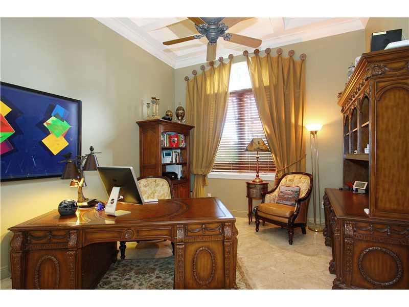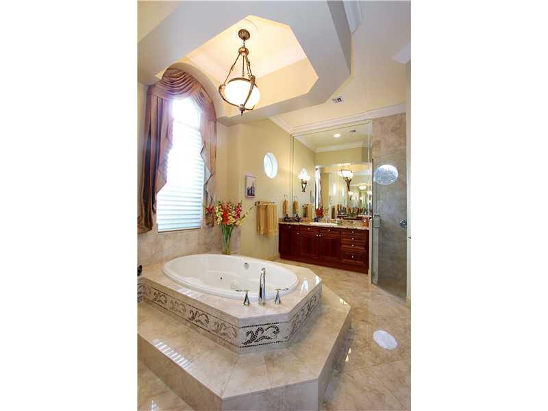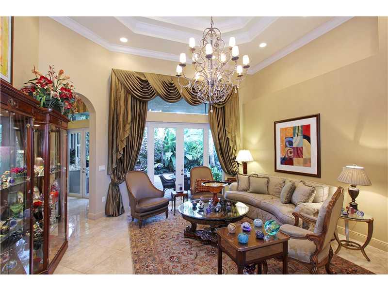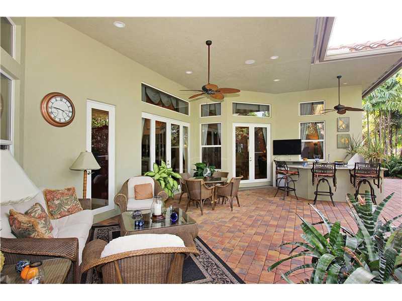 Beautifully presented one level Mediterranean inspired 4BR/3BA/2CG pool residence is certain to please. The foyer entry flows to dramatic formal living and dining rooms with impressive 13' to 17' tray ceilings and opens to exquisite chefs kitchen with ce nter island and wet bar. Large family room and breakfast nook, custom drapery, marble floors, impact windows and doors. Outside boasts a delightful covered loggia, sparkling pool with wet shelf and a summer kitchen ideal for entertaining. Generator Inc.