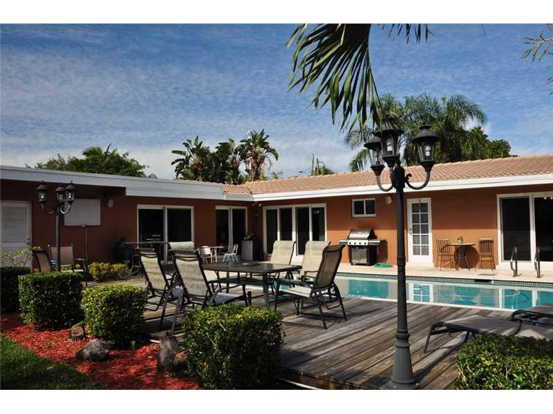 WELCOME HOME! This 3 bdrm pool home is situated on a LARGE lot in the esteemed waterfront community of Pompano Shores offering a REMODELED kitchen--GRANITE, hardwood cabinetry w/ pull-out shelves, QUAINT front porch and TREMENDOUS PRIVATE backyard (no nei ghbors in back)--pool, wood deck, beautiful landscaping...IDEAL for entertaining or just relaxing. NEWER IMPACT WINDOWS & sliding glass DOORS, A/C, washer, water heater. Steps to PRIVATE school, house of worship, shops, & restaurants...Minutes to BEACH.