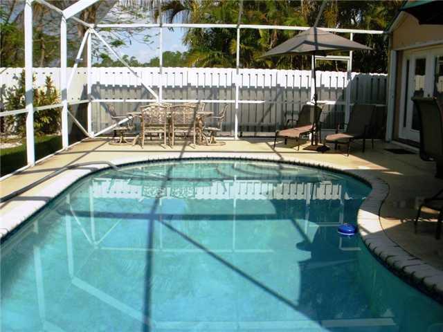 A show stopper with real appeal!Meticulous 3 bdm home w/gorgeous designer kitchen,42 inch light wood cabinets,gorgeous granite countertops w/tumble marble backsplash.Fabulous kitchen faucet fixture!Most of the home has wood floors, except the master and s econdary bedroom.Three sets of newer French doors w/built-in blinds lead out to the patio.You will love the almost new master bath,very chic & beautiful.Solar heated(panels)scrnd pool w/patio area.*huge yard*Accordian Shutters*crown molding*fully fenced*