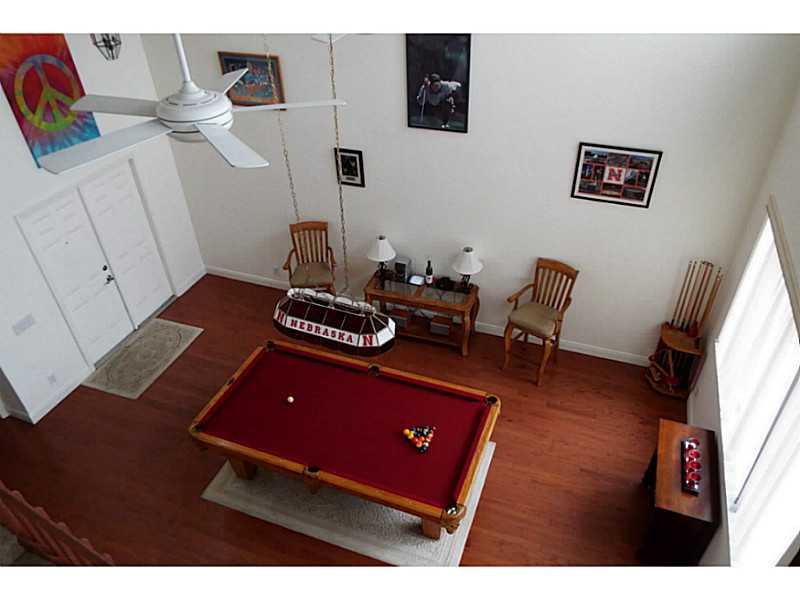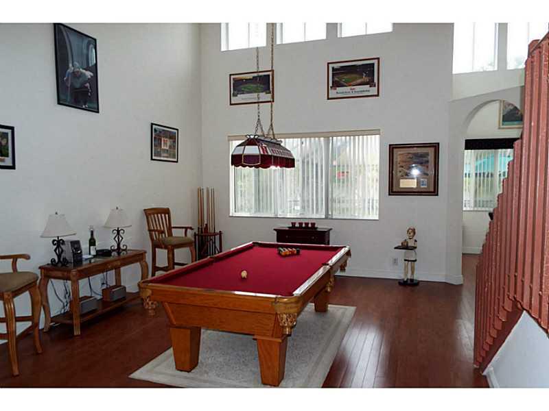 Family neighborhood with 24/7 security,4 full bedrooms up, & office down, 2 full baths up, 1 .5 dn, plus 1.5 cabana bath on patio. Screened pool w child fence, large lot includes horseshoe pit, outdoor kitchen with stone tile, refrig, grill, & storage. Na tural wood floors down, carpet up, 2 newer A/C units, freshly painted, 3 pantries, large utility room, combination hurricane shutters or hurricane windows throughout. New granite and cabinets in kitchen. Home is cable and direct TV ready. Must see