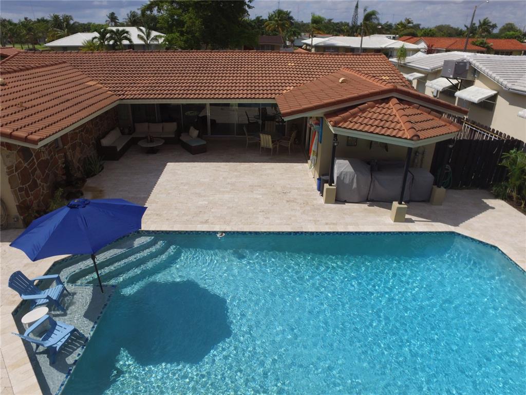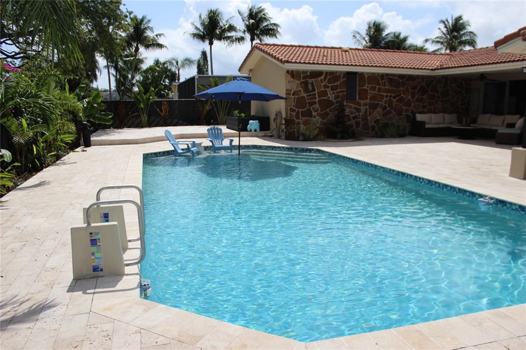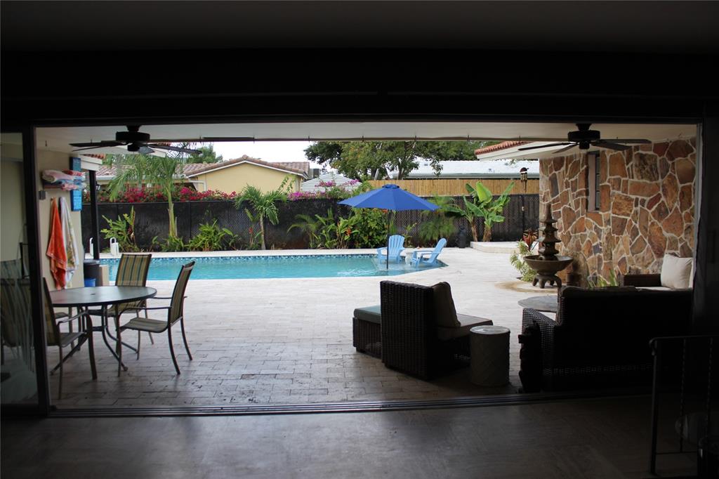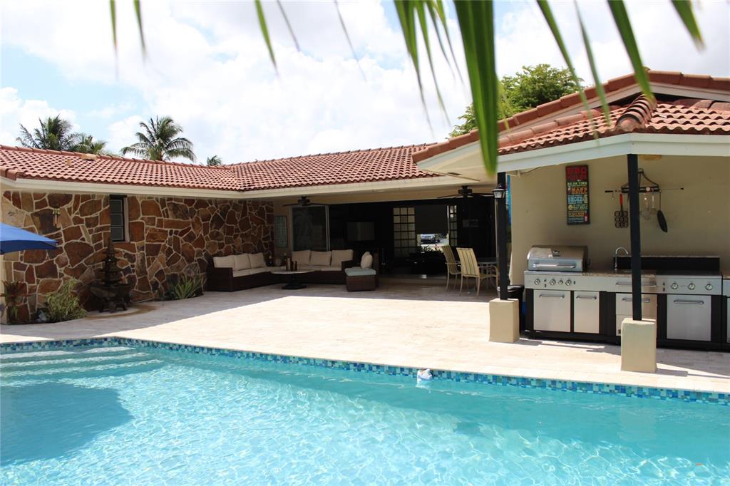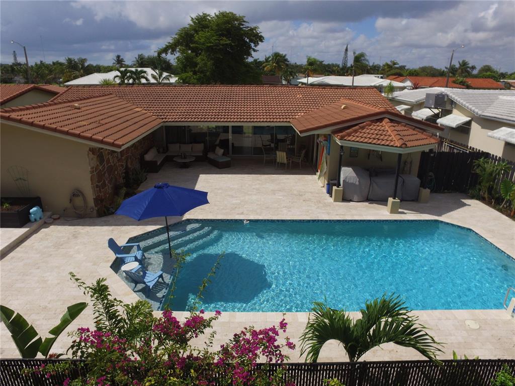 One of a kind home in Hollywood Hills...tons of character and unique features. 4 bedroom, 3 bath. Marble & tile flooring throughout.Great living space.Large kitchen & separate family room.True master suite w/dressing area & walk in closets.One of four bedrooms is privately located off the kitchen w/full bath.Perfect for In-Laws or guests.WOW view of the pool/patio from main living area....with a wall of sliding glass doors that open fully to bring the outside in.The oversized patio area can't be matched...