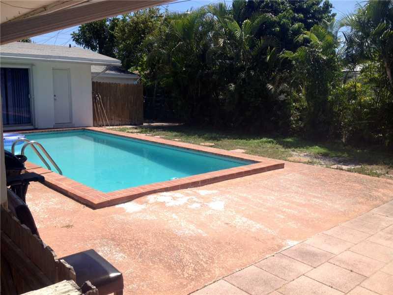 Spotless pool home in HOT Riverland area! From the moment you enter you are greeted to a large open family room with views out to the sparkling pool and patio. Amazing restored terrazzo floors and tile throughout. Master bedroom features sliding doors to the pool and cabana bath door off the master bath. Plenty of windows provide tons of natural light. Large eat in Kitchen. Full size laundry area inside. Enjoy entertaining on the expansive patio area with oversized pool. Great shed as well for storage.