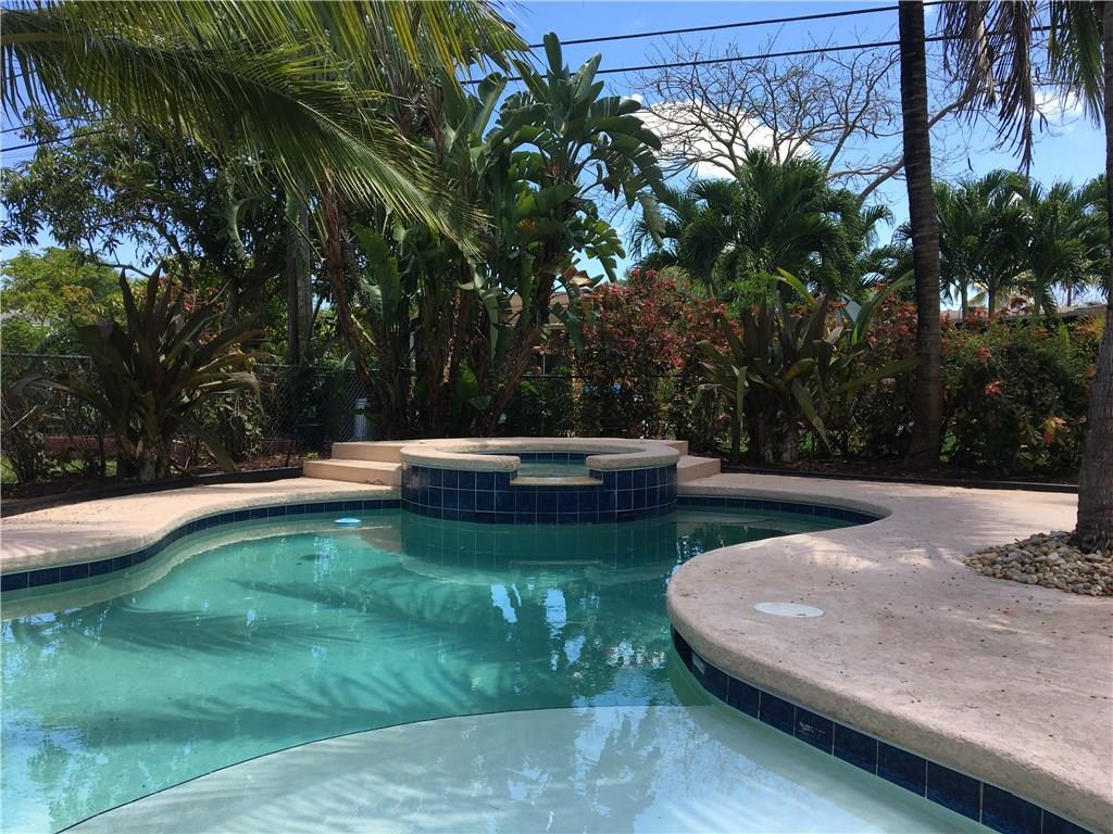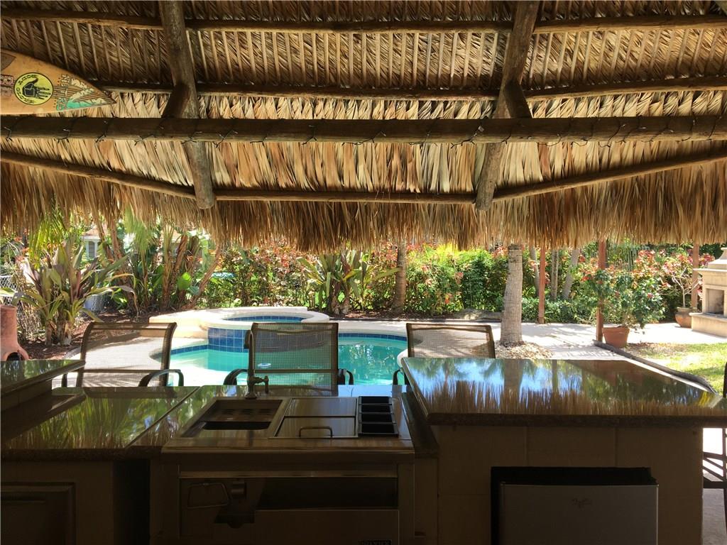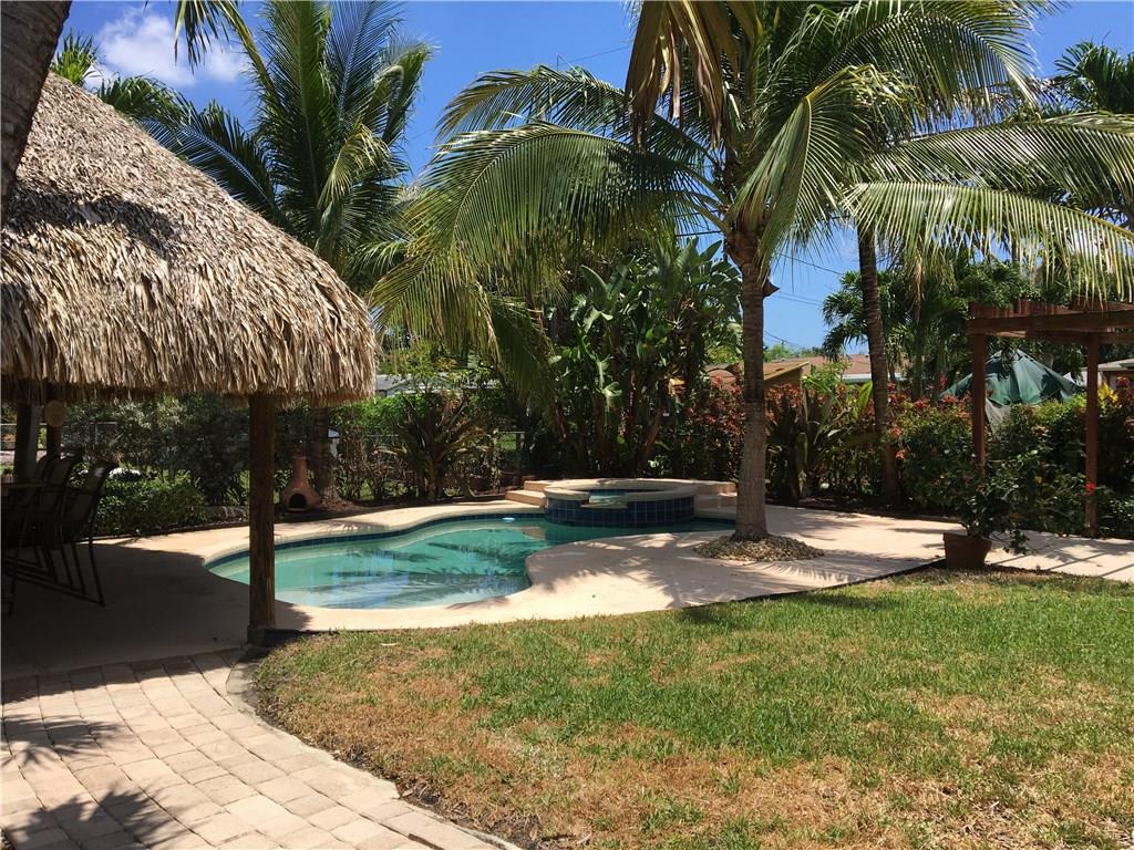 Fabulous 3/2 pool home conveniently located to I95, downtown and the beaches. Tile and laminate wood flooring, upgraded kitchen with stainless steel appliances, large screened in patio overlooking the pool & spa, tiki hut, gazebo and tropical fenced in landscaped yard. Complete stainless steel kitchen under tiki hut and bar for all of your outside cooking and entertainment. New roof installed 2016, newer A/C, freshly painted interior & exterior, 7550 watt generator, accordion hurricane shutters. Must see