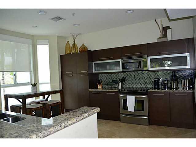 Only unit with this floor plan out of 57 units. Best location in complex, located just off of pool area with private garden & fountain at front door. Custom features include, bay window with eat in kitchen, balconies on 2nd, 3rd floors with rooftop terra ce and outdoor shower and hot tub. 9,10,11 foot ceilings, marble floors, wood stairs, custom shades, baseboards & closet. Granite counter tops, stainless appliances. True 3 bedroom, 3.5 bath. Open and spacious. 2 car garage. Must see. Premium unit.