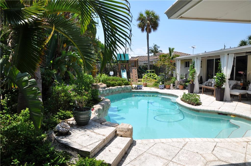Tropical paradise steps from beautiful Atlantic beaches! This 3 bed / 2 bath has a stunning custom pool & waterfall, and is a short stroll to the ocean or downtown Lauderdale-by-the-Sea shopping area. Wood & tile floors throughout, custom built-ins in living room, and both bathrooms have been renovated. Owner recently installed impact windows/doors & replaced all A/C ducting.