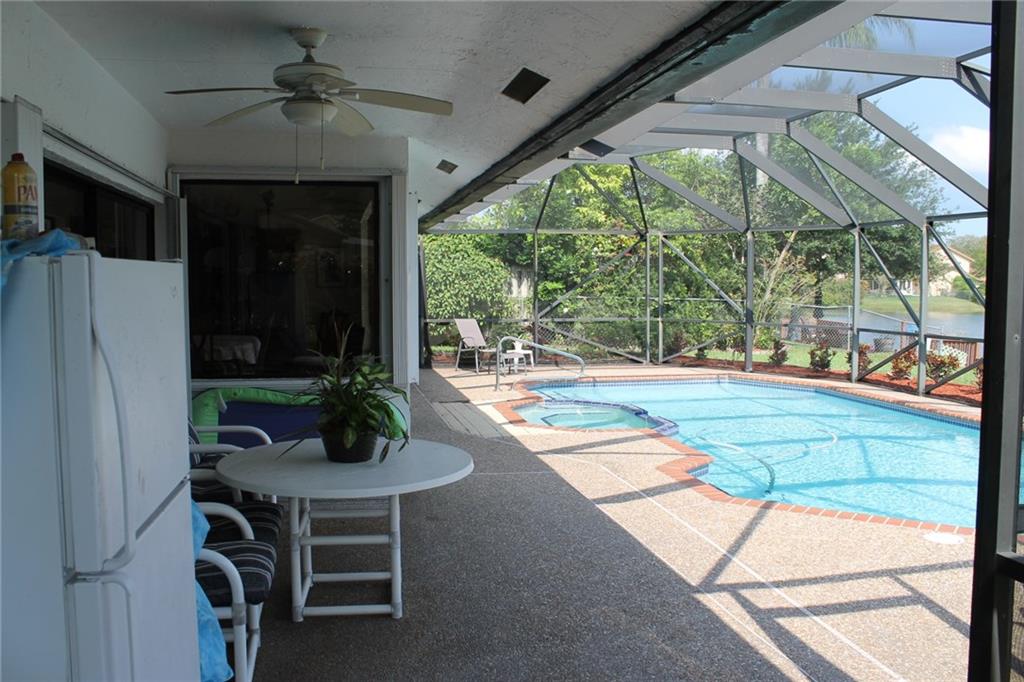 IVANHOE LAKE AND HEATED POOL HOME, GORGEOUS LAKEFRONT PROPERTY, CUL D SAC STREET. AMENTIES INCLUDE: NEW ROOF IN 8/2016; UPDATED BATHS IN 2016, UPDATED KITCHEN, LARGE SCREENED POOL/PATIO AND PORCH, UNDER COUNTER LIGHTING, HIGH EFFICIENCY TRANE A/C, ACCORDION SHUTTERS, SPLIT BEDROOMS, DOOR OPENER, AUTO SPRINKLER DRAWN FROM LAKE, FERTILIZER SYSTEM CONNECTED TO SPRINKLER. THIS HOME IS PERFECT FOR ENTERTAINING. EXCLUDED: WASHER, DRYER, REFRIGERATOR ON PORCH AND IN GARGAGE. BEAUTIFUL SUNSETS!!