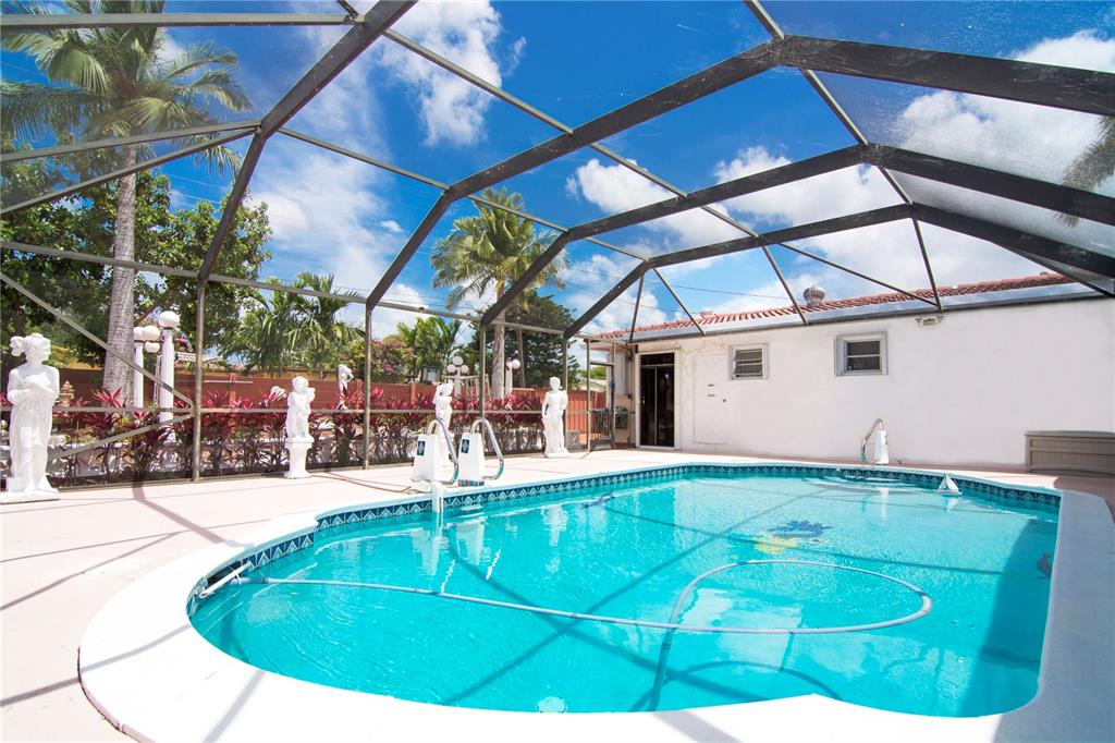 Love entertaining? This is your dream home. Wonderful home in the heart of Hollywood Hills. Remodeled kitchen opens up onto screened in pool area. Outdoor counter overlooking kitchen is perfect for lunch by the pool. The outdoor pool bathroom and commercial kitchen are two unique features you are sure to enjoy. Very comfortable floor plan with family room conveniently located next to kitchen and opens to backyard. Spacious master bedroom and large master bath. Huge fenced in backyard. Additional features i
