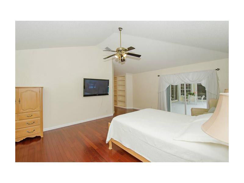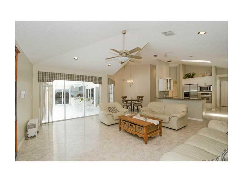 4/3 Pool home w/ serene water views.Corner lot with 2 driveways offer ample parking for family & friends.Spacious & Immaculate. Vaulted ceilings & large foyer w/ tons of natural light.Tile throughout w/ wood flooring in all bedrooms. Master suite features built-in shelving, his/her walk-in closets & view w/ sliding glass door that leads to patio. Open kitchen layout w/ granite countertops,SS appliances, skylight & breakfast nook overlooking pool. Screened in patio w/ pool & built-in grill.Newer roof&AC's.