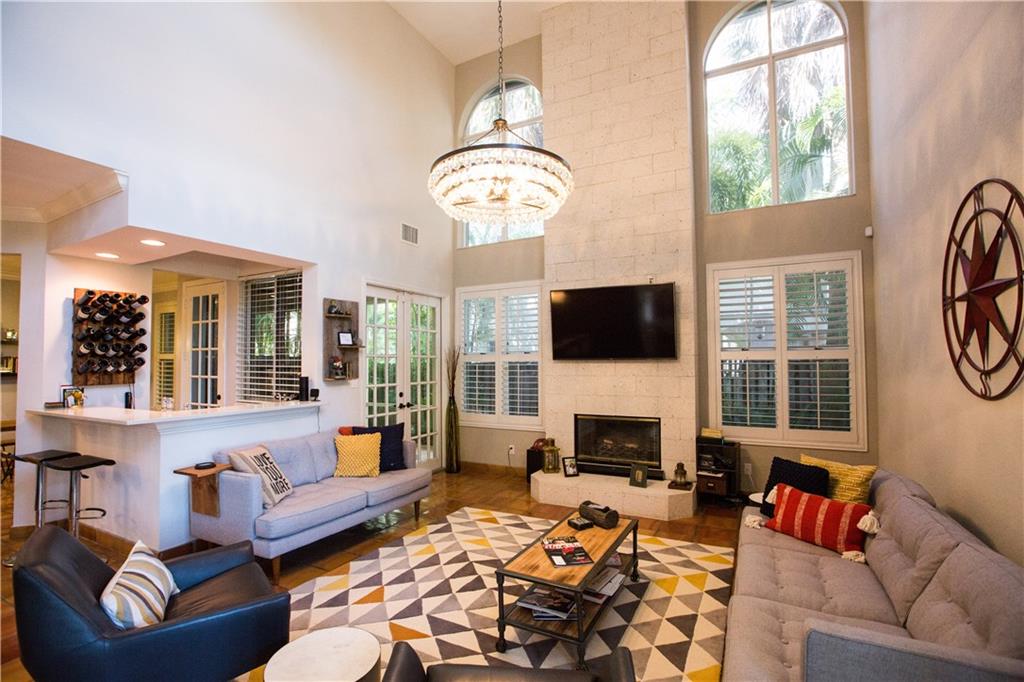 Motivated Sellers! Dramatic 3 bed/2.5 bath townhome steps to Las Olas. Completely updated. Tremendous vaulted ceilings, oversized atrium windows, elegant fireplace & an open 2 story switchback staircase & catwalk. Gorgeous clay tile on the first level, coupled with dark hardwoods on the second floor. Immense master suite w/custom closet and an elegant en-suite bath w/sea glass tiling throughout. Two generous sized guest bedrooms w/shared bath, & 2nd floor laundry. Amazing private patio for entertaining.