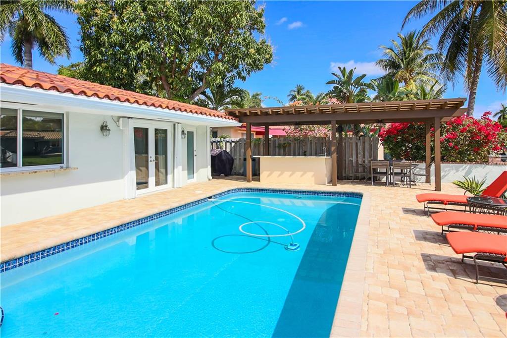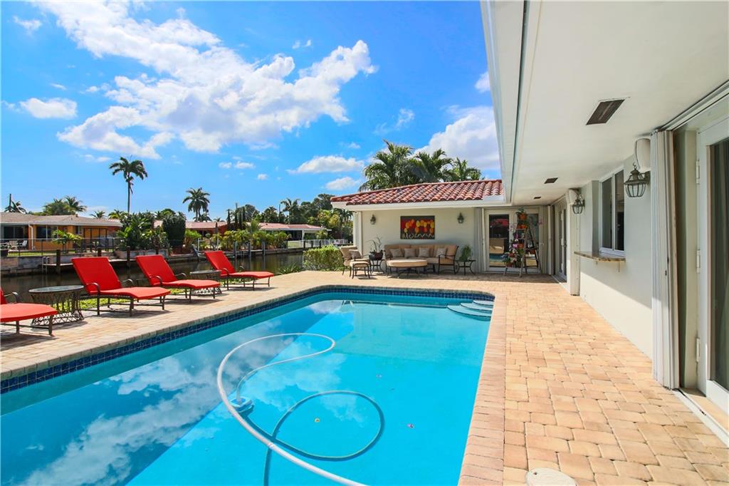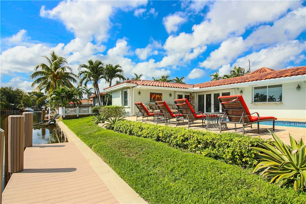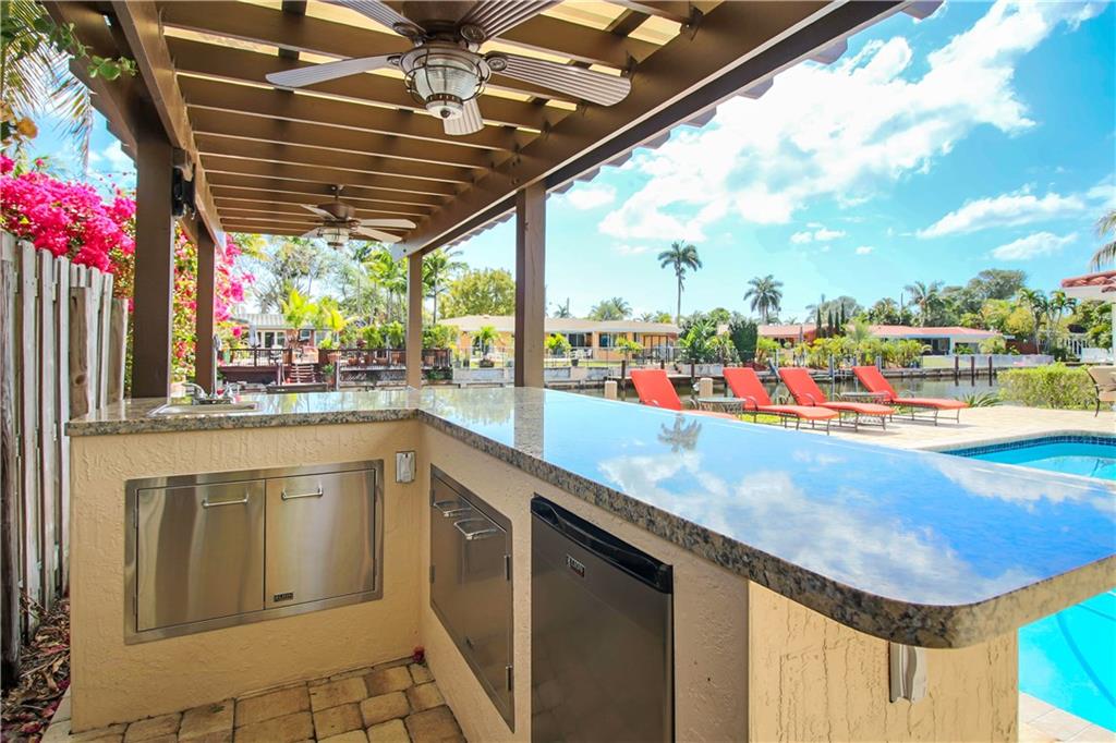 Designer favorite! Luxury living in a sought after neighborhood. This Coral Ridge Isles waterfront home with a beautiful pool patio, covered outdoor kitchen and bar makes for the ultimate Florida lifestyle. This house has it all: updated kitchen with chef-quality appliances, gas range, granite counter tops and custom cabinetry. Office/den with gorgeous built-ins, grand foyer with high ceiling, marble floors in living room, and partial impact doors and windows are just a few of the many amenities here.