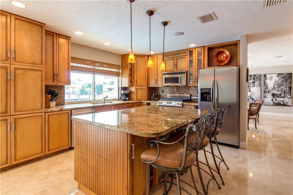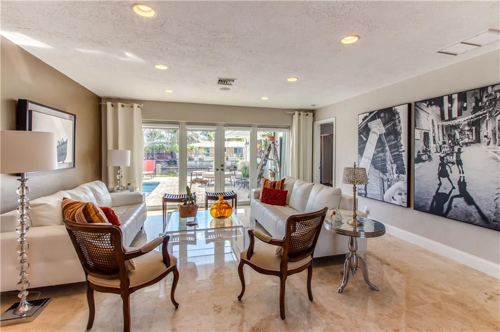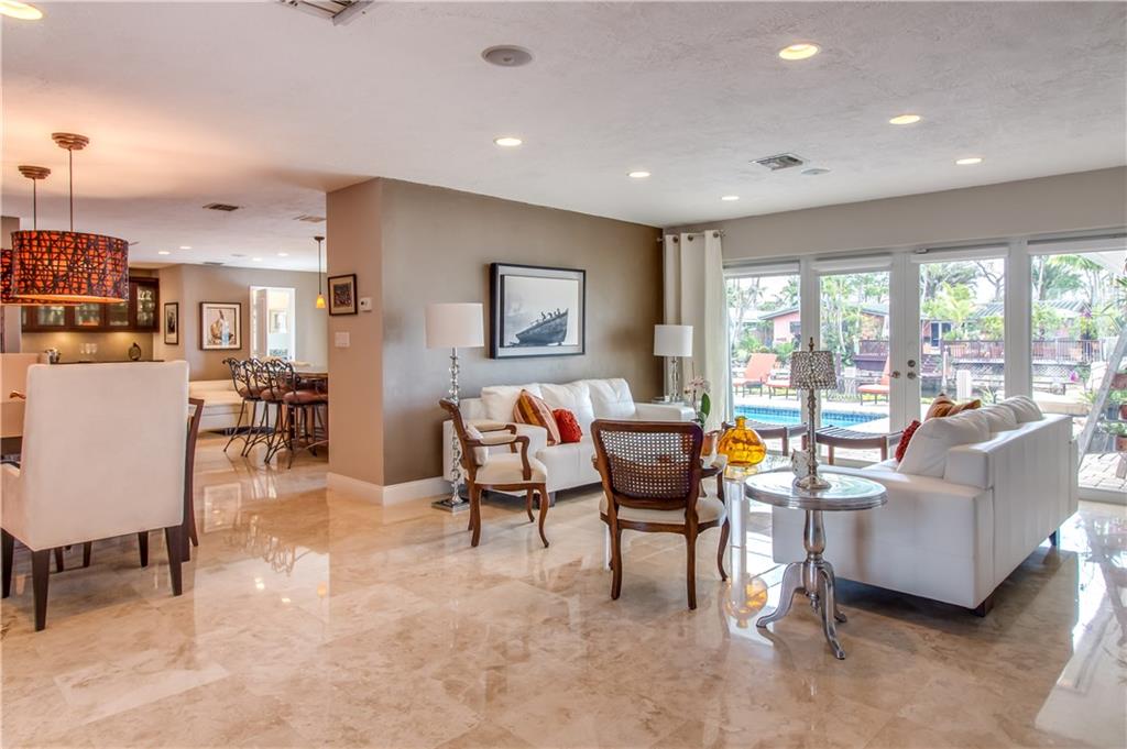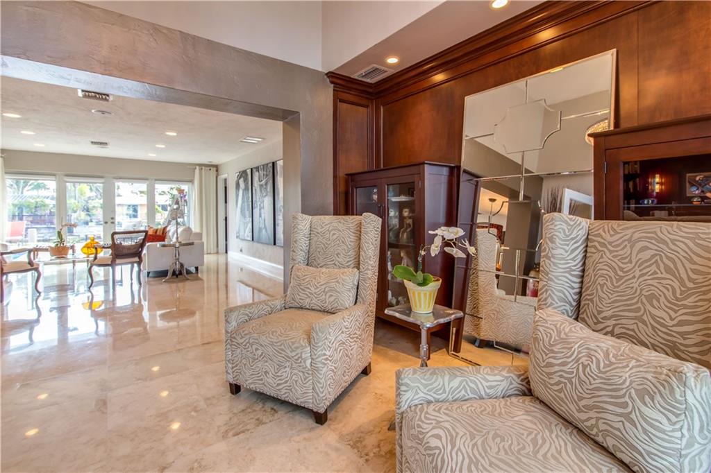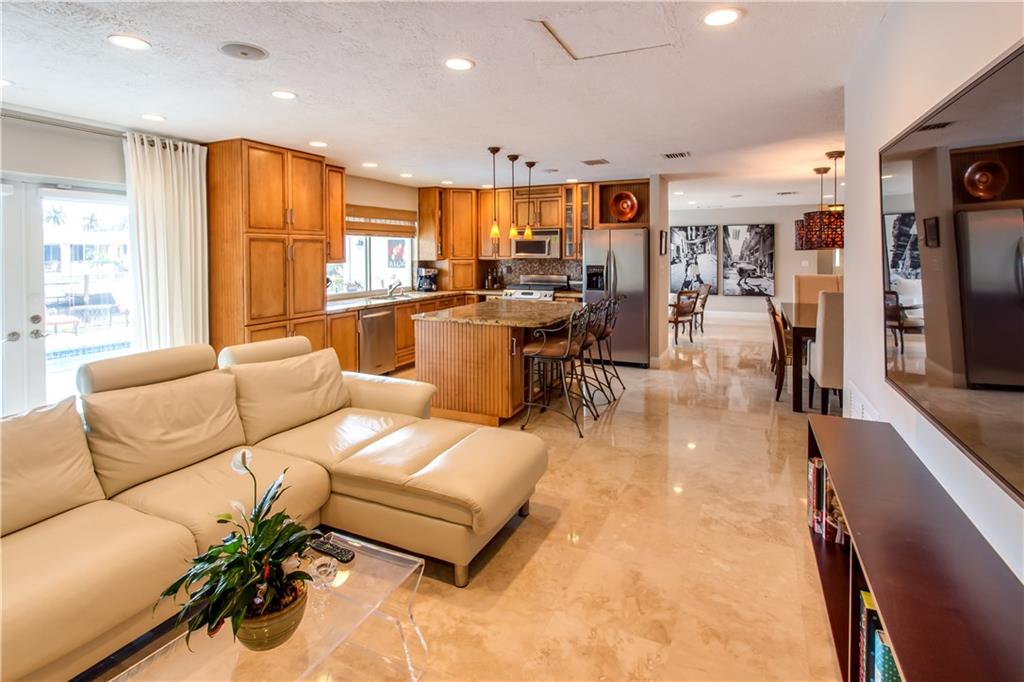 Designer favorite! Luxury living in a sought after neighborhood. This Coral Ridge Isles waterfront home with a beautiful pool patio, covered outdoor kitchen and bar makes for the ultimate Florida lifestyle. This house has it all: updated kitchen with chef-quality appliances, gas range, granite counter tops and custom cabinetry. Office/den with gorgeous built-ins, grand foyer with high ceiling, marble floors in living room, and partial impact doors and windows are just a few of the many amenities here.
