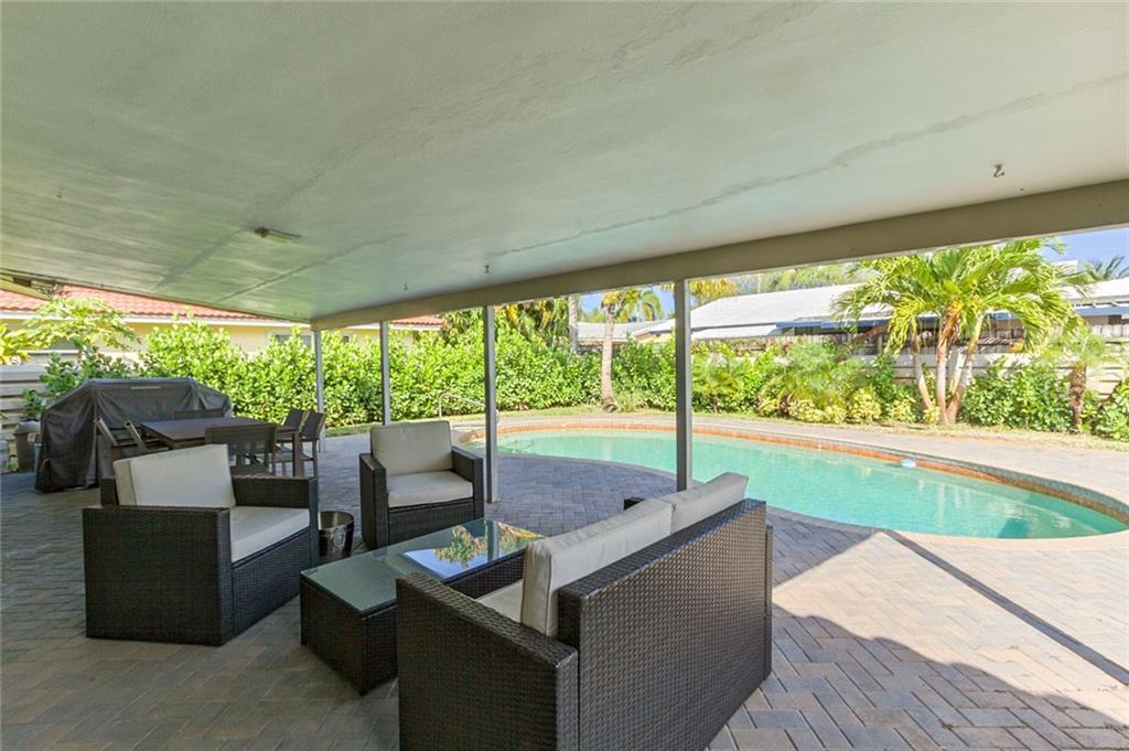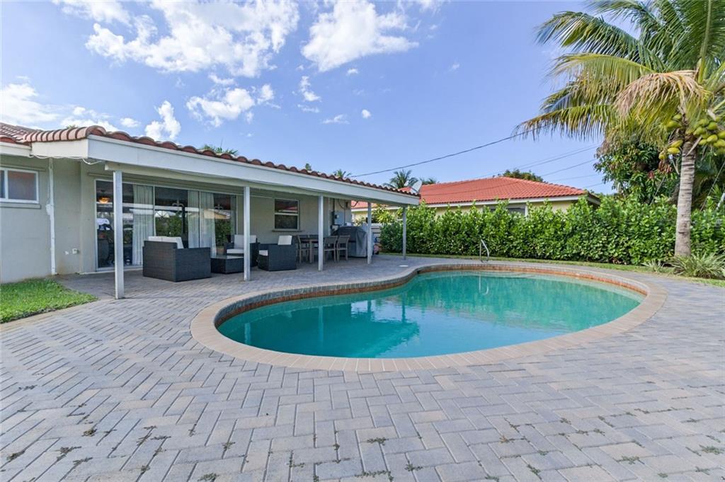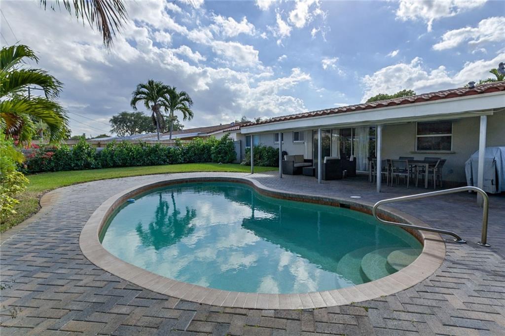 WOW!!! 3/2 in the heart of the highly sought after community of Coral Ridge Isles in East Fort Lauderdale. NO HOA!!! Features a completely redone backyard with brand new paving, patio, and pool area! Completely updated kitchen with granite counter tops, soft shut cabinetry, travertine floors, a gas stove and perfect view of dining room. Brazilian cherry wood floors throughout the home. Circular driveway and carport with direct access to the home to keep you dry during those South Florida rainy days.