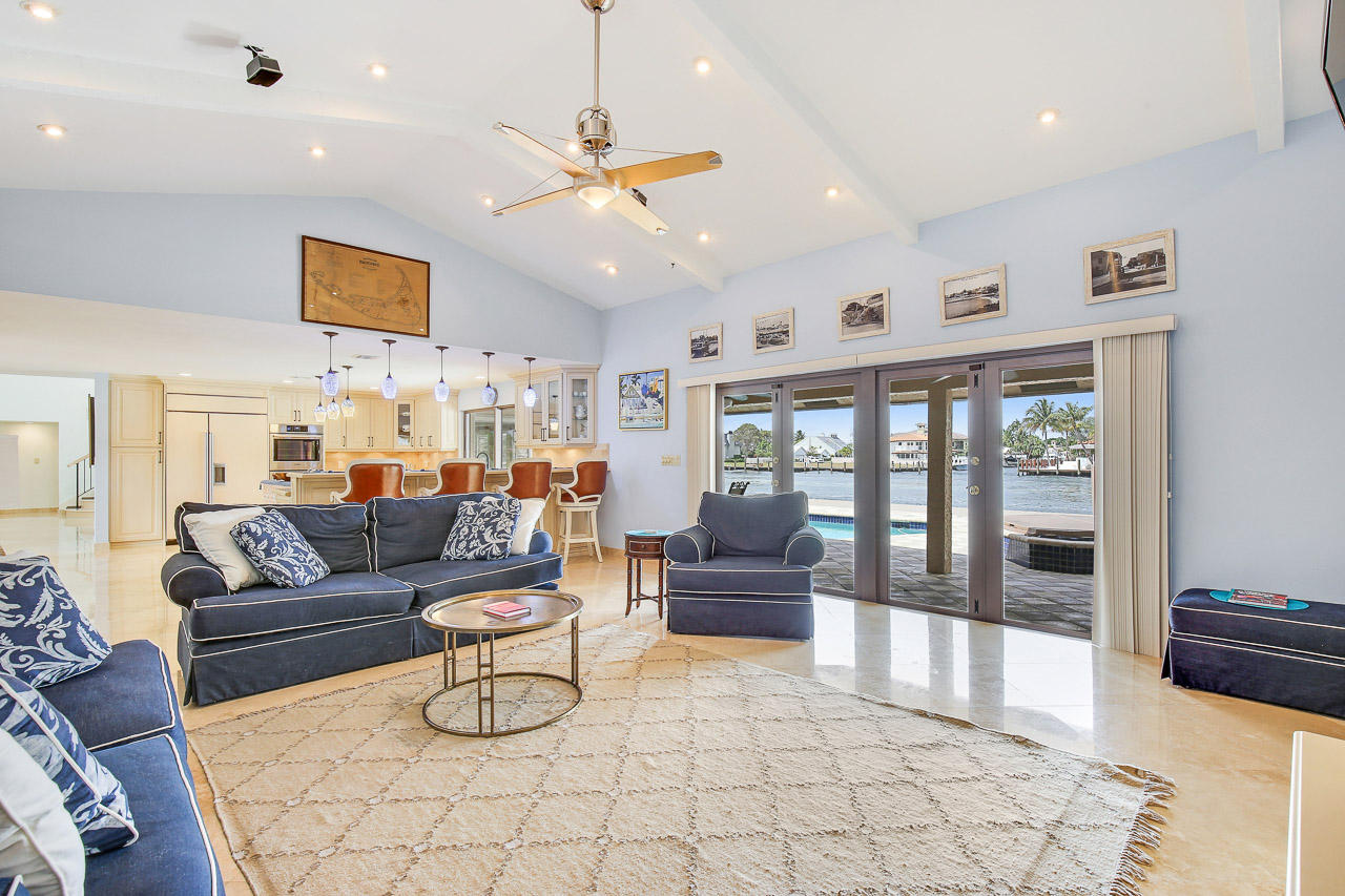 This rare, direct Intracoastal Waterway home has over 150' on the water with dockage and 18,000 pound lift. Sitting on the point, this 2 story home offers 5 bedrooms, 4 and one-half bathrooms, for a total of 4416 square feet. Experience water views from almost every room! High volume ceilings add to the spacious feel. Updates and renovations took place in 2014 and 2015. Kitchen updates include top of the line appliances, wine cooler, ample storage and hand blown pendant lighting. The eat-in kitchen opens into a large family room, perfect for entertaining. The first level of this light filled home opens to an expansive patio and resort style pool with spa. Three guest bedrooms and an office/den are located on the first level. The master suite is a generous 28x13, and features customized...