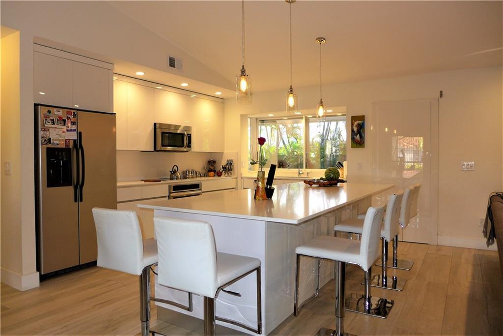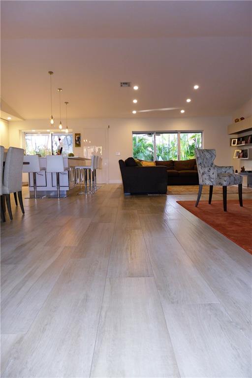 Designer Masterpiece! Featuring porcelain beach wood tile throughout entire home, floated ceilings, modern high-end kitchen w/ quartz counters & island, pantry,formal dining room! Master boasts 2 walk in closets & incredible en suite w/ dual sinks, shower & soak tub! Split floor plan featuring another master & 2 more oversized bedrooms. Lush landscaping surrounds the heated pool for privacy, covered patio for rainy BBQ's, cabana half bath, Electric Hurricane Shutters & Excellent Schools! Must see!