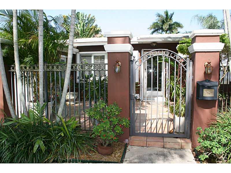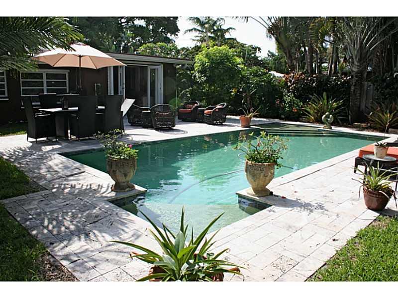 A beautiful courtyard entrance to this 2/2 pool home with an extra room off the 2nd bedroom and a one car garage in the heart of Poinsettia Heights. This home features a rectangular designer pool with Italian tumbled marble decking area for entertaining and lush tropical landscaping surrounding for plenty of privacy. Newer air conditioning, updated kitchen and bath, recess lighting. living area over looking beautiful backyard pool area. Hurricane shutters and panels for all openings.
