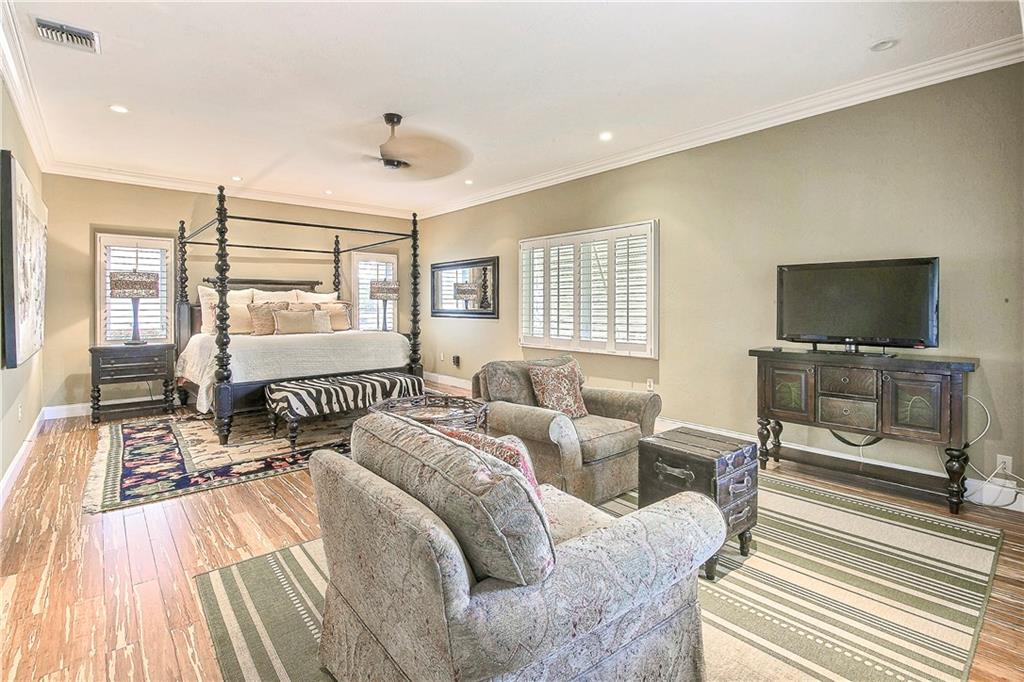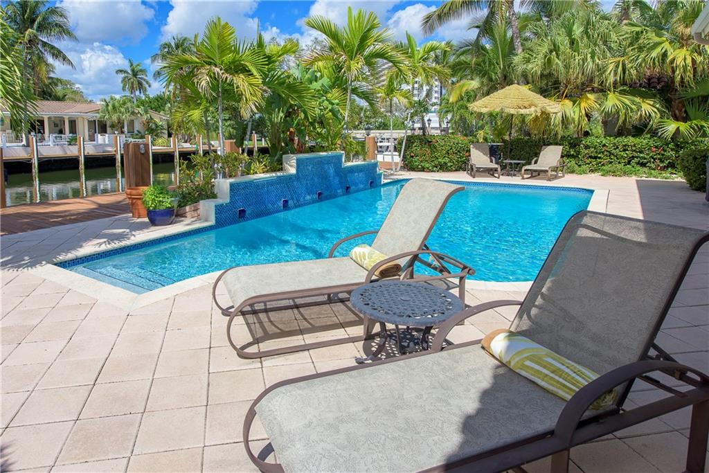 Beautifully updated home located within walking distance to the beach. Soaring ceilings, foyer entry, flagstone fireplace and large family room ideal for grand scale or intimate entertaining. Spacious master suite with sitting room on first floor with water views. Additional 2nd master also on first floor, two additional bedrooms on 2nd floor. Large covered patio overlooking waterfall feature pool. 100 Ft waterfront with dock, concrete piles, water, electric within minutes to the inlet.