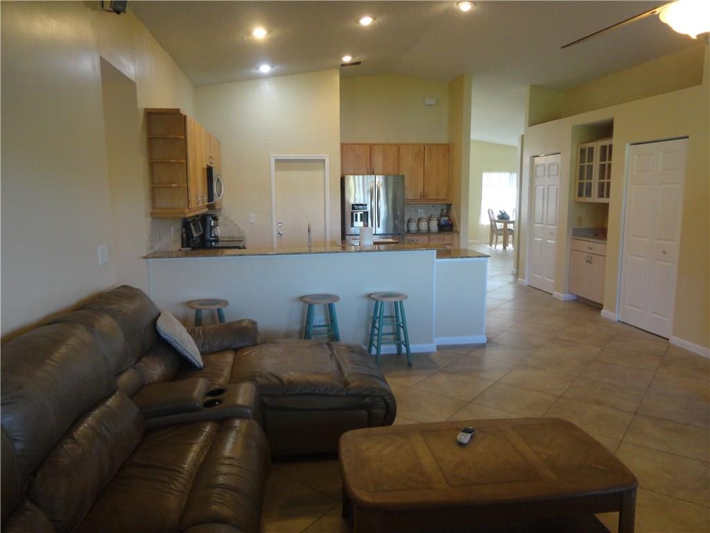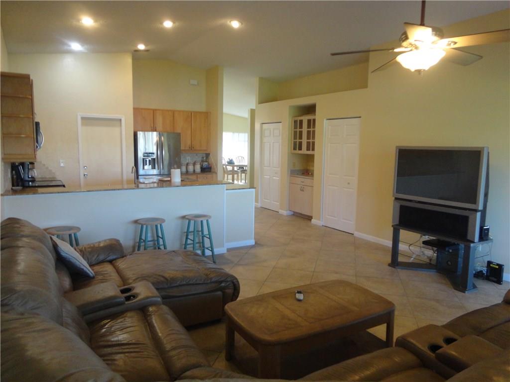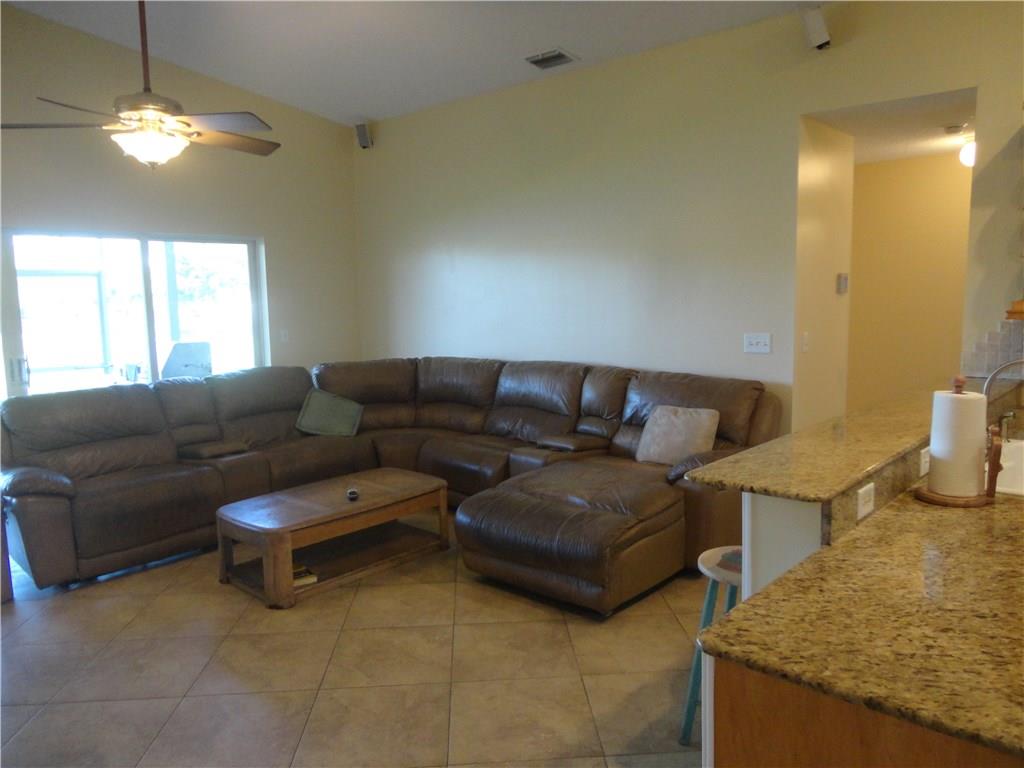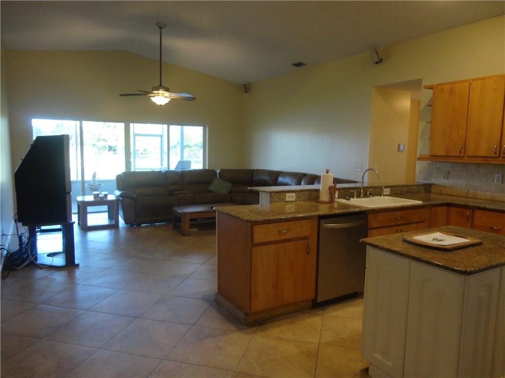 This Beautiful waterfront 3 bedroom 2 bath home features a gorgeous lake view, large newly screened patio, 2 car garage, 20x20 tile, freshly painted inside and out, kitchen with center Island and granite counter tops, both bathrooms remodeled in 2005, central ac 2013, water heater 2013, large walk-in closet in master bedroom vaulted ceilings, new closet doors and so much more