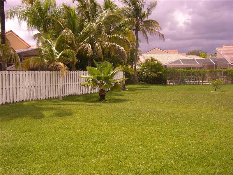SITUATED IN FRONT OF A PRETTY PASSIVE PARK, YOU WILL FIND THIS SINGLE STORY HOME W/ HUGE LOT AND A GREAT SPLIT BEDROOM FLOOR PLAN. SEPARATE FAMILY ROOM, HIGH CEILINGS, CLERESTORY WINDOWS KITCHEN WITH LOTS OF WOOD CABINETS, STAINLESS STEEL APPLIANCES & E AT-IN AREA.NEWER CARPET. OVER-SIZED MASTER SUITE, MASTER BATHROOM W/DOUBLE SINK AND VANITY AREA, SEP. SHOWER AND TUB. 7 CEILING FANS,ROOFED&SCREENED PATIO, FULL SET OF ACCORDIAN STORM SHUTTERS.SECURED 24 HOUR GUARD GATE,COMMUNITY POOL&PICNIC AREA.