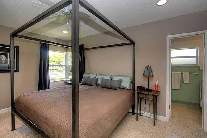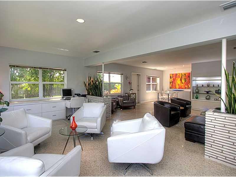 Hip mid-century modern residence east of US 1, situated directly on the widest part of the Middle River. Updated to perfection in 2011, this gorgeous, bright & airy turn-key home features cool terrazzo floors throughout, stunning modern kitchen, impact wi ndows/doors, and newer AC & roof. Tucked away on a quiet cul-de-sac, with a splendid park-like setting, this oversized lot features a long private driveway, 80' dock, spacious yard with room for a pool, and spectacular wide waterway views.