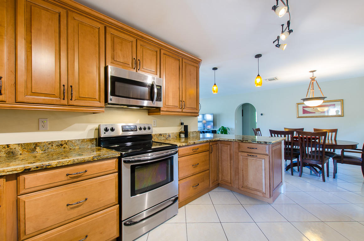 Welcome home! 3/2 Open concept remodeled single family home. Custom kitchen with wood cabinets(soft close) and granite countertops and stainless steel appliances. Tile throughout entire house. Custom built laundry room. New A/C in 2015 with UV light. Fenced yard with lots of privacy and patio.