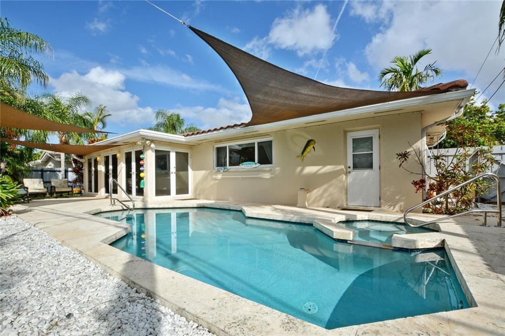Located in Imperial Point community, this single family home has been meticulously updated, featuring; limestone flooring in living area, and restored terrazzo floors in bedrooms, updated kitchen and spacious laundry room with additional storage, open and bright living area, French doors lead out to the pool area, oversize master suite, custom built heated pool and spa. Fully fenced in for maximum privacy, carport can easily be converted back into a garage by installing garage door. A MUST SEE!
