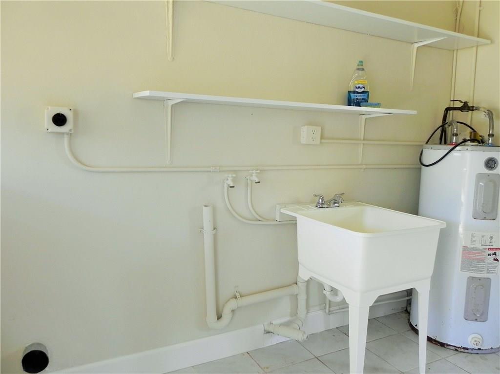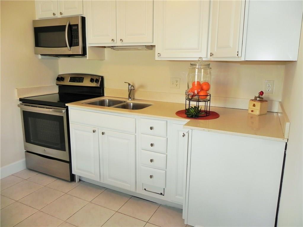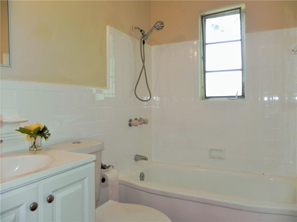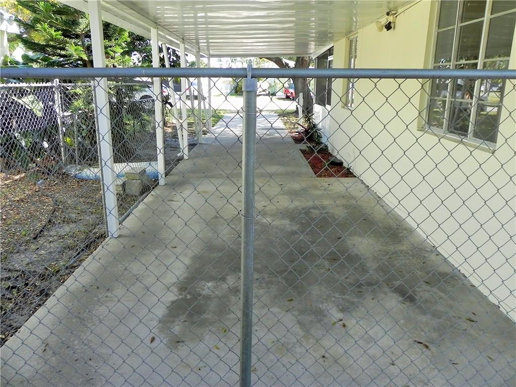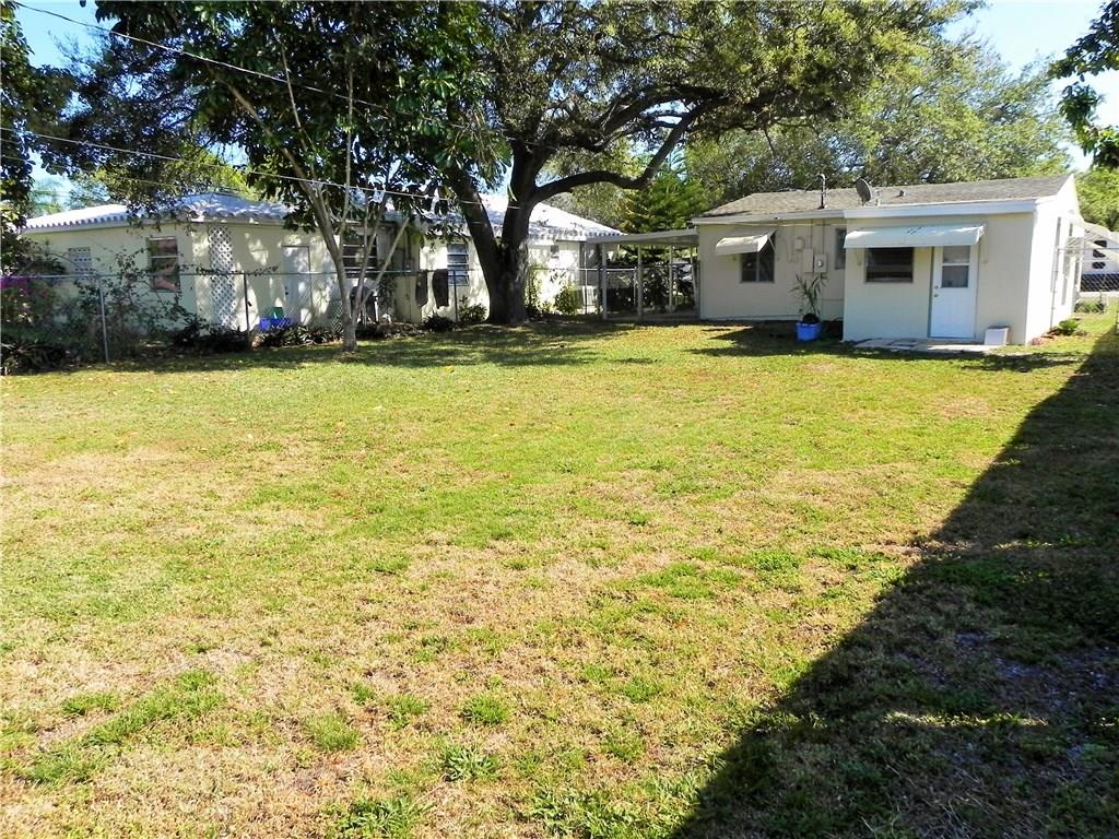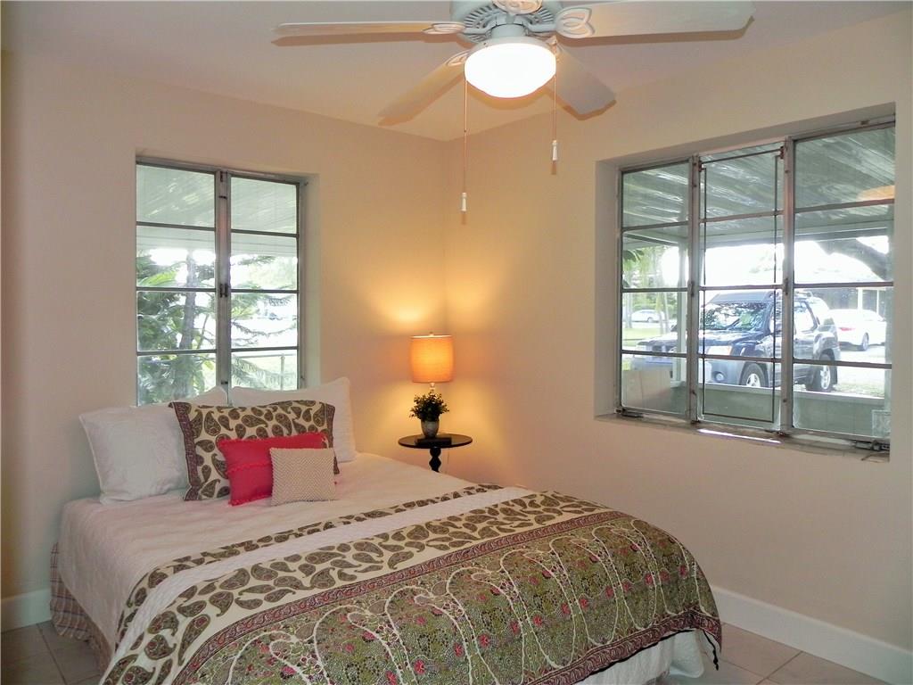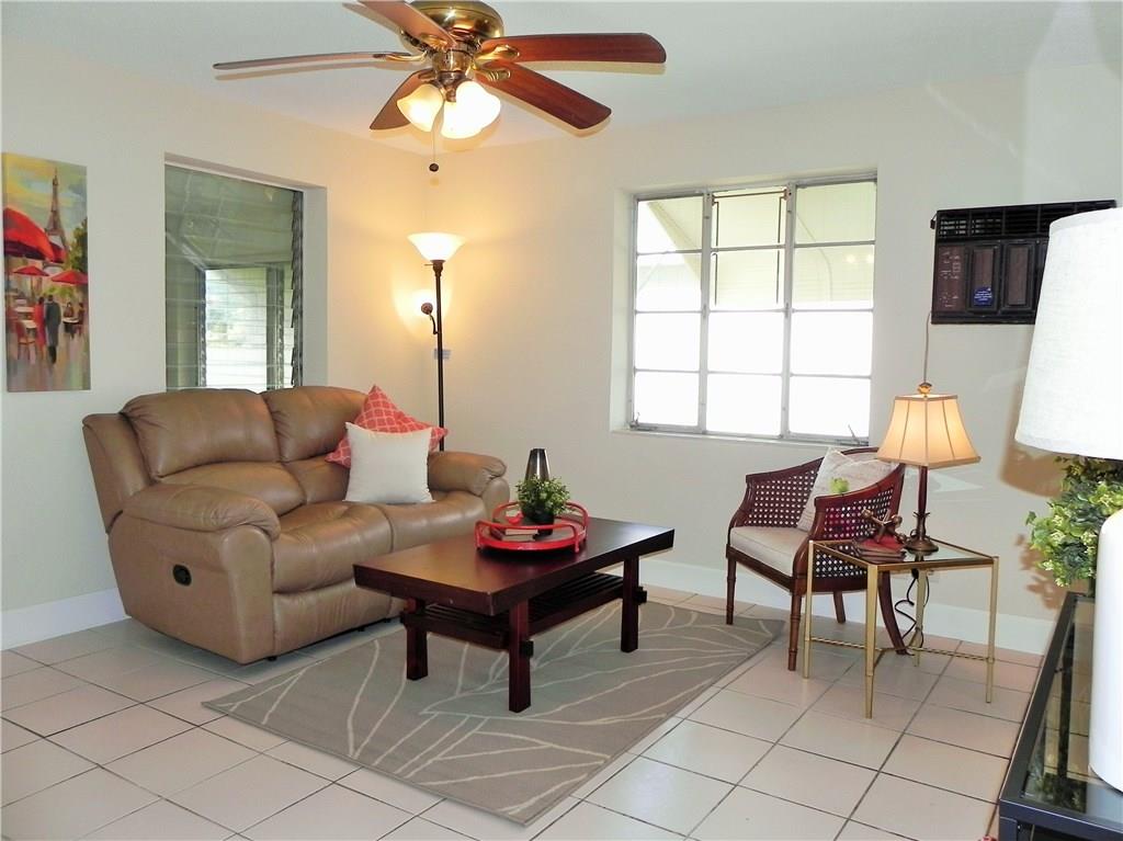 Great starter home, freshly painted, updated kitchen and bath. Big back yard with room for expansion or pool. Tile floors throughout. Three bonus rooms; screened patio as you walk in from covered carport, glassed-in patio with entrance door to living room and large utility room in the back with stainless steel refrigerator and washer/dryer hook-up. Cozy eat-in kitchen with stainless steel range & microwave. Termite treatment completed in past month; warranty available. Wall A/C. Furniture for sale. AS IS