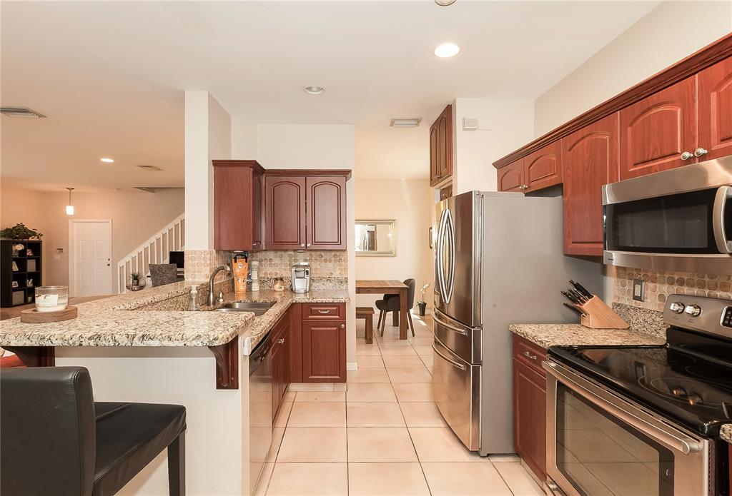 Sought after 4 BR 2 story on water! GORGEOUS views everywhere you turn! Bright open family area, formal dining & remodeled kitchen w/granite counter tops, stainless steel appliances, tons of cabinet space & tile floors. All wood flooring upstairs into expansive master BR w/dual sinks in priv. bath & LG walk-in closet. Additional spacious BR's w/charming built in desk in 4th rm. 2CG, laundry rm & 1/2 bath downstairs. Huge screened patio overlooking water. Hurricane shutters, community pool, low HOA fees!