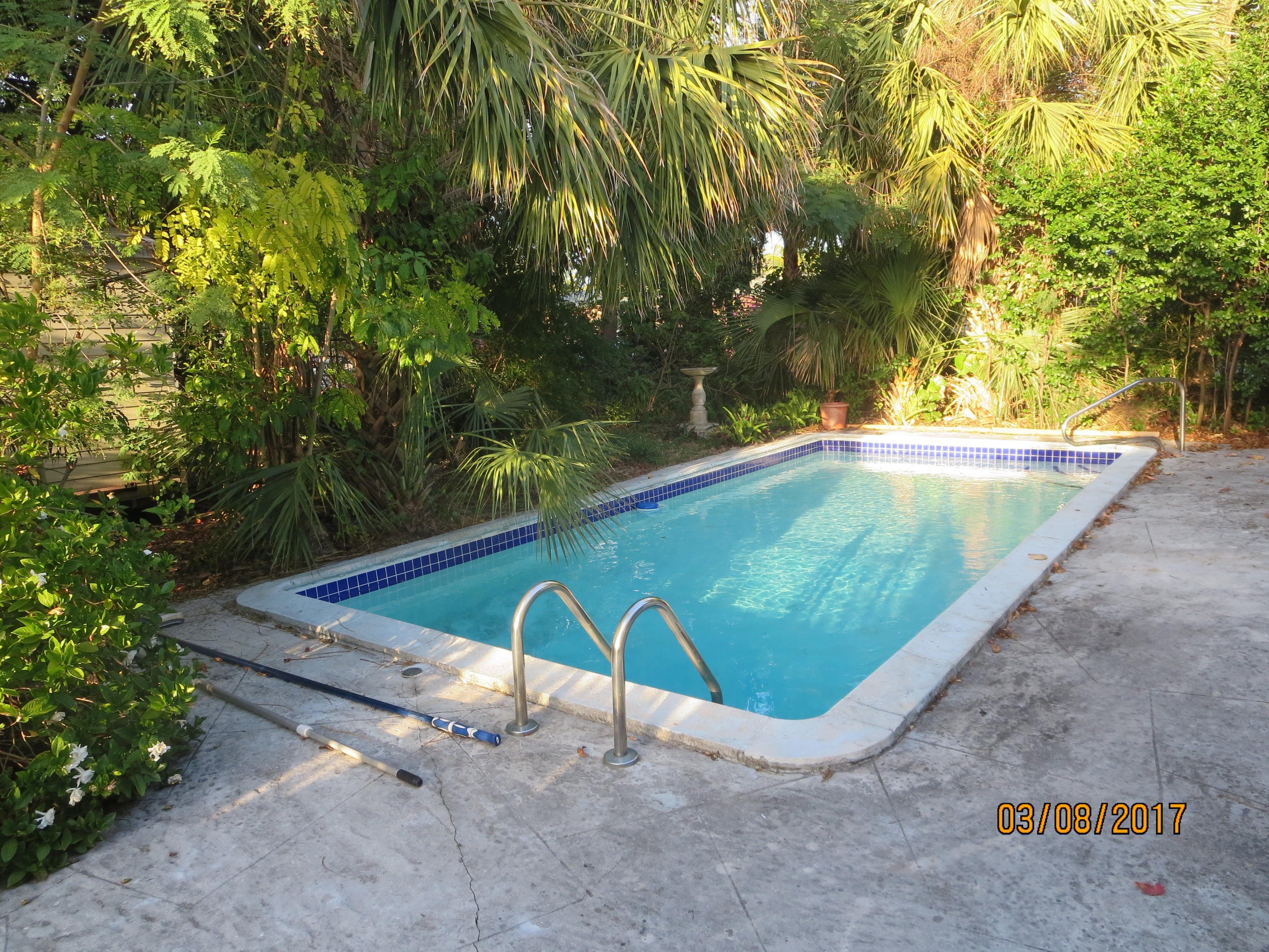 Cozy 2/1 single family pool home on a corner lot with lush landscaping. Family room can easliy be turned into a large third bedroom. All new horizontal impact windows through out the entire home including the slider which leads to a very private backyard with an in ground pool, patio and shed. Tile throughout this home no carpet anywhere. Large kitchen with new cabinets and white appliances. Newer washer and dryer inside the house under air. New water heater. Newer AC unit inside and out. This home is in good condition and has a ton of potential.