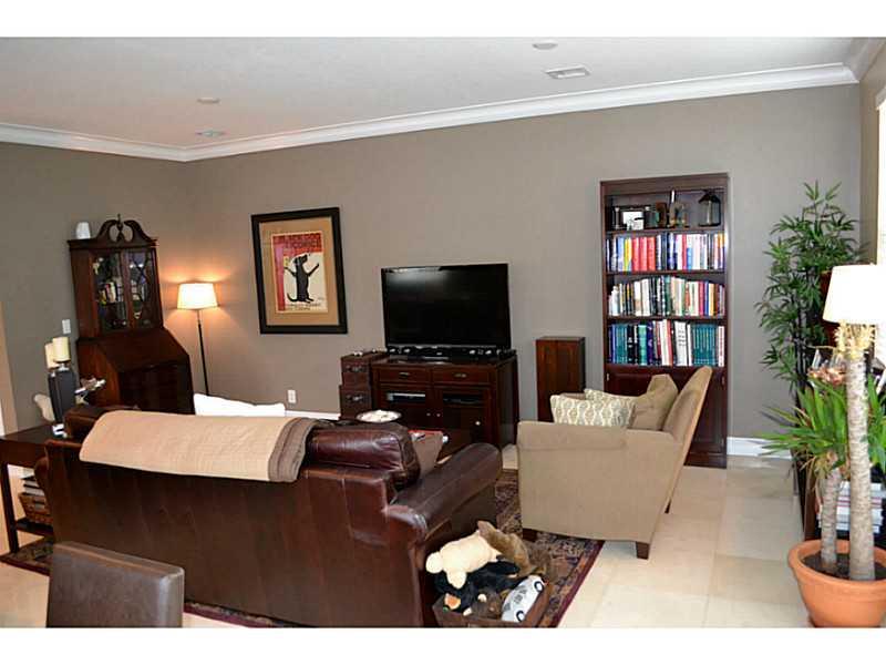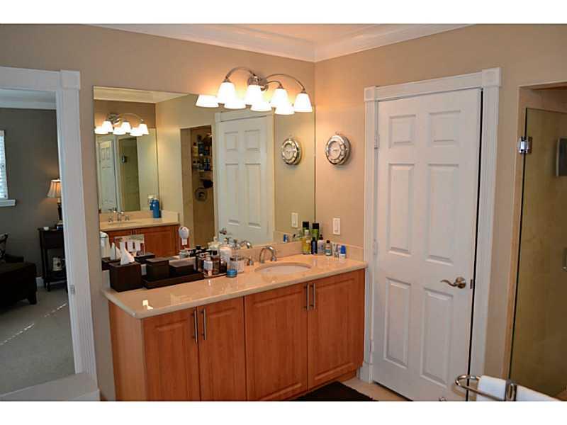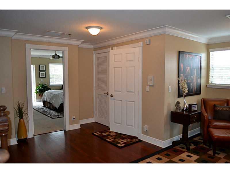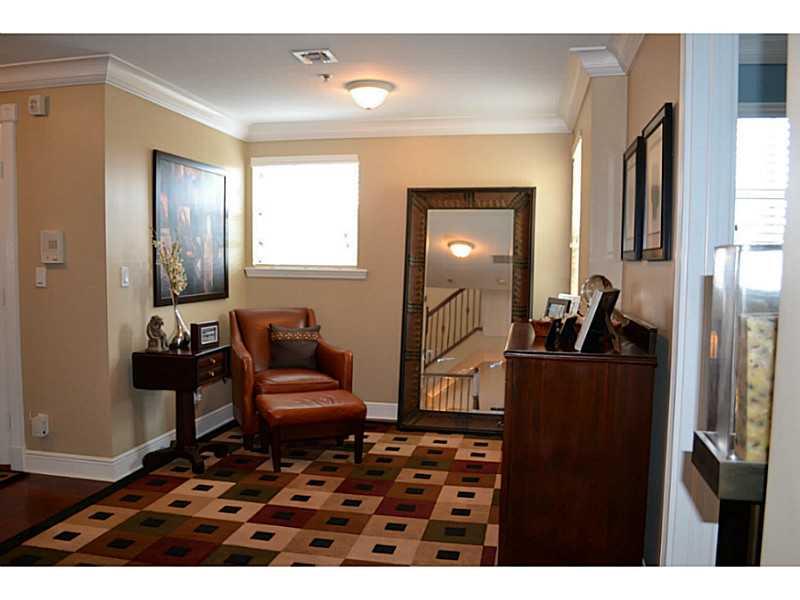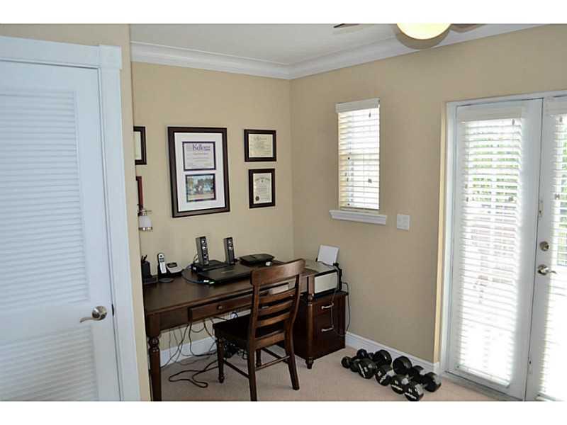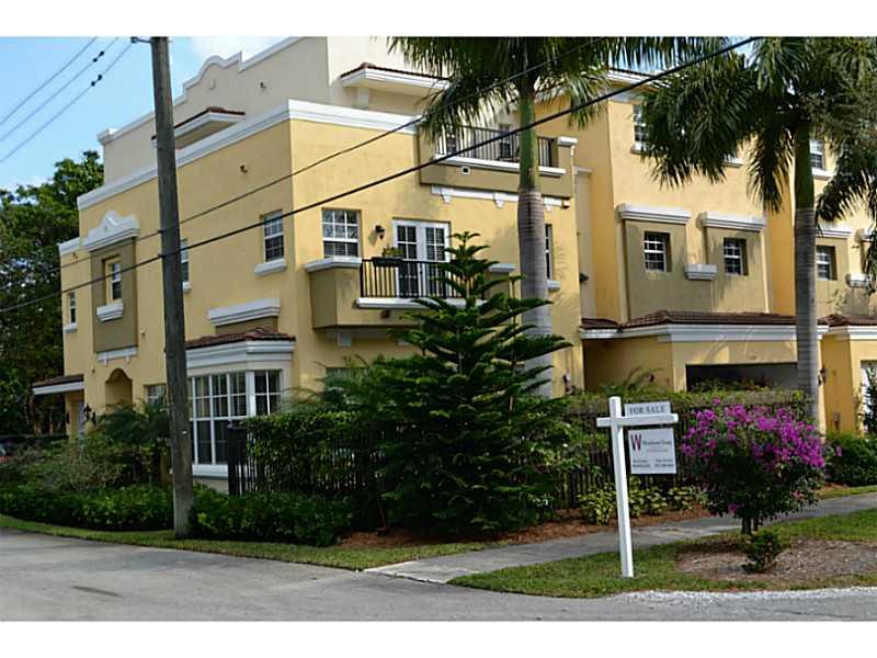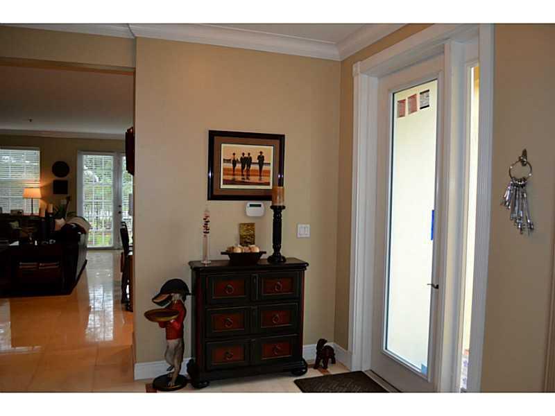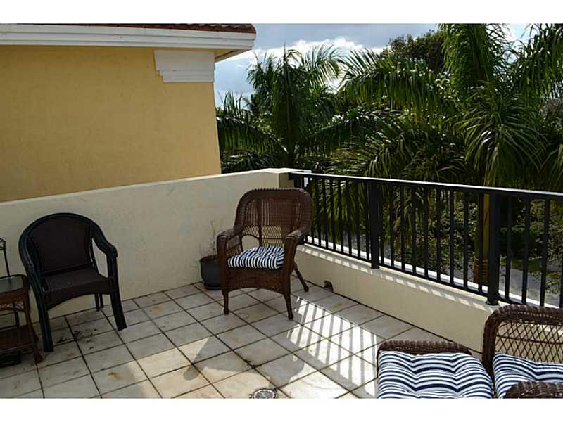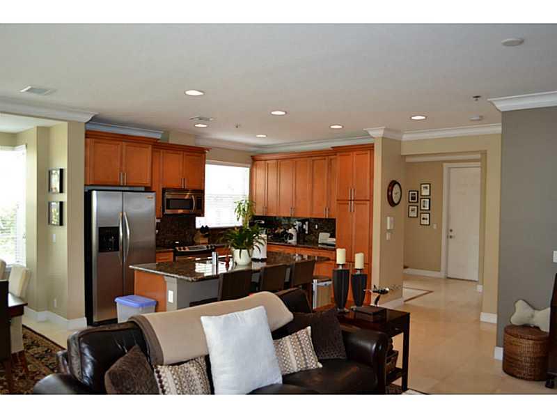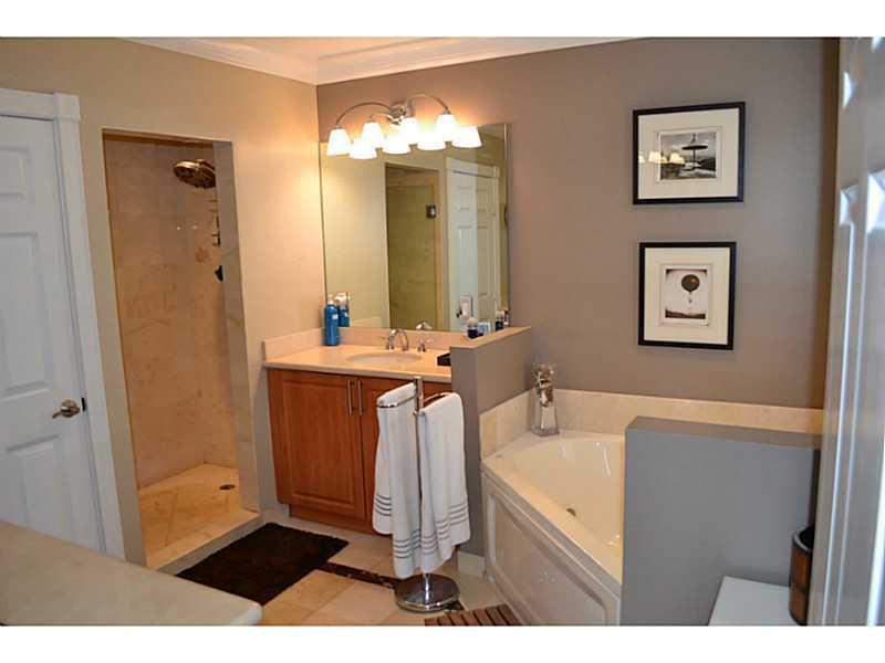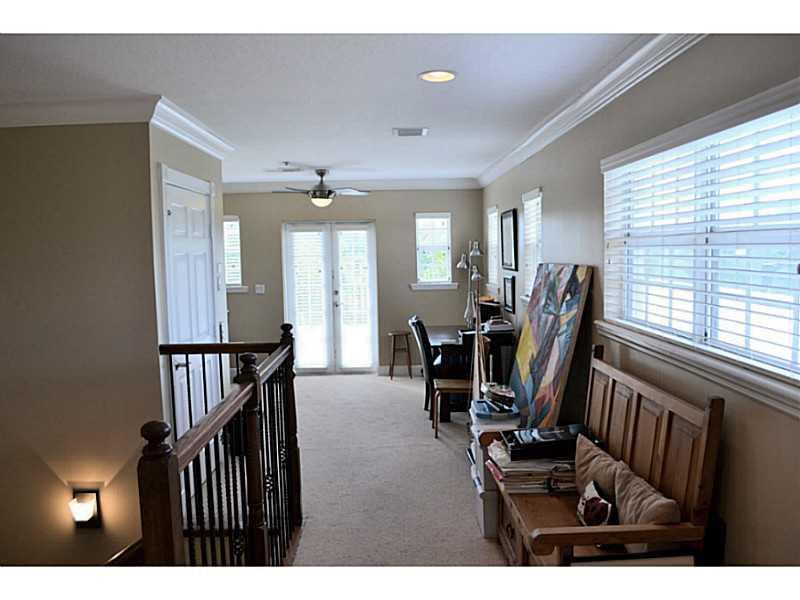 Beautifully appointed, very light corner unit with elevator, small garden and upstairs patio. Upgraded bathrooms, impact windows and doors, crown molding,attached 2 car garage, open kitchen and living area, great location.