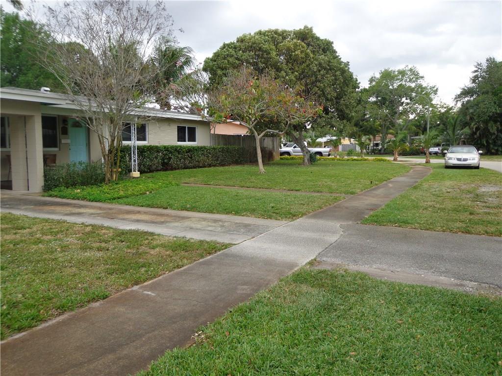 Charming 3/2 in desirable FLAMINGO PARK on a 10000' fenced corner lot with Tropical & fruit trees. Room for boat/RV parking. UPGRADED KITCHEN. Impact windows, new AC & Wtr Htr. Lawn sprinklers, Natural gas available. Large storage shed. MSTR BR has a garden view. Flamingo Park is a QUIET subdivision centrally located minutes from downtown, the beaches, Major Expressways and the Airport. Many of the homes feature Ocean Access. 3 Parks in the area & one has a BOAT RAMP