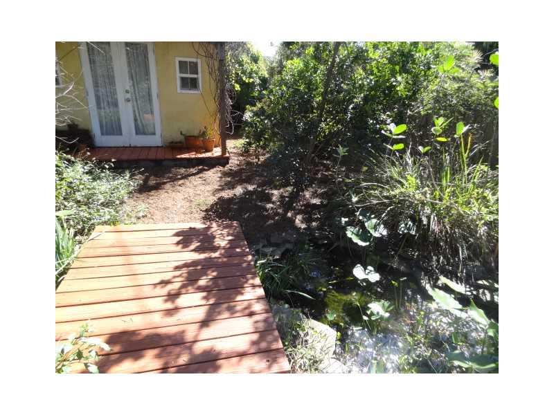 Immaculate home surrounded by gorgeous, designer, southern landscape.Perfect house to customize and make it your own, features beautiful wood floors, updated bathroom and kitchen, hurricane impact windows and french doors that open to an entertainer's dre am: a fabulous, private, tranquil backyard with wood deck, custom made cushioned bench (with storage) that could sit 12 friends, a spacious, cottage looking storage/shed, 2 ponds and a peaceful reading relaxing area.A true sanctuary for nature lovers.