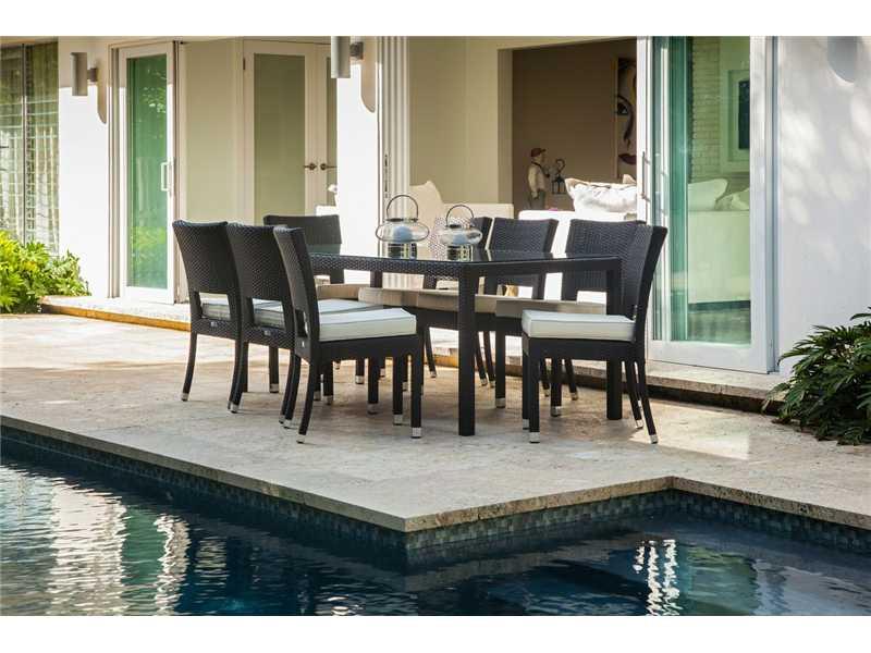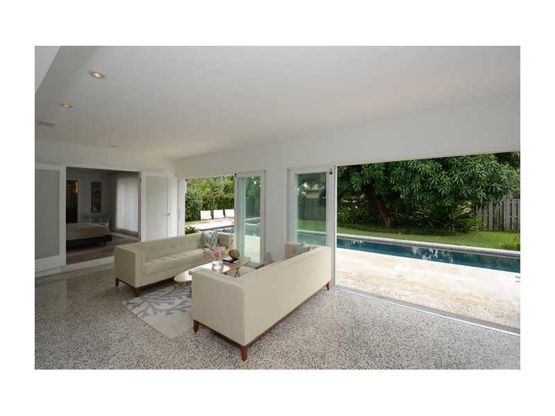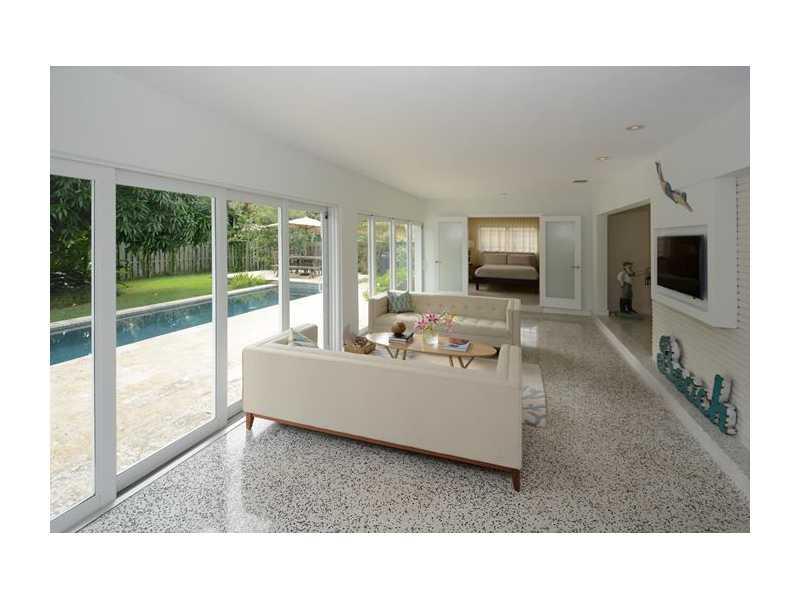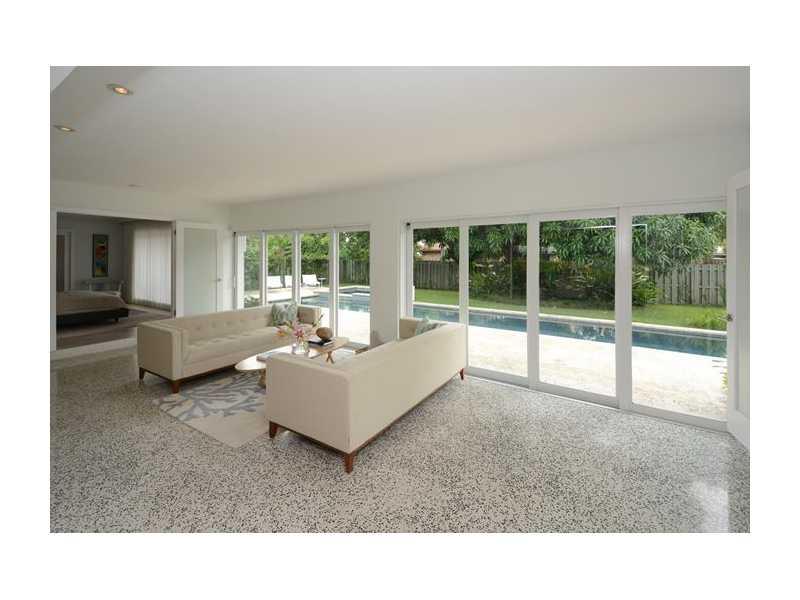 Superbly rendered mid-century restoration situated in the beach neighborhood of Dolphin Isles. Polished terrazzo floors flow through over 2400 square feet of sparkling interiors featuring a brand new kitchen and baths, triple split bedroom plan and carefu lly chosen lighting and hardware for every room. Sliding glass walls open to a terraced keystone patio and a very private green space surrounding a stunning lap pool with waterfall spa. This home has generous closet space and an over sized two car garage.