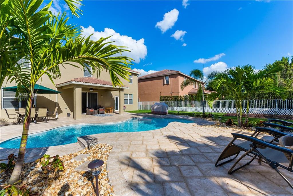 Updated 5/3.5 plus loft. Make special memories in outdoor paradise with Brand new state of the art pool, patio, & landscaping. Kitchen has center island, stainless steel appliances, walk in pantry, & tons of countertop space. Full bedroom/bathroom downstairs. Cabana bath to pool area. Expansive Living Room & Family Room.Spacious Master bedroom with remodeled Bath. Second floor laundry. A plus schools close by. HOA includes:alarm,internet,cable,clubhouse,gym,guard gated,&more.