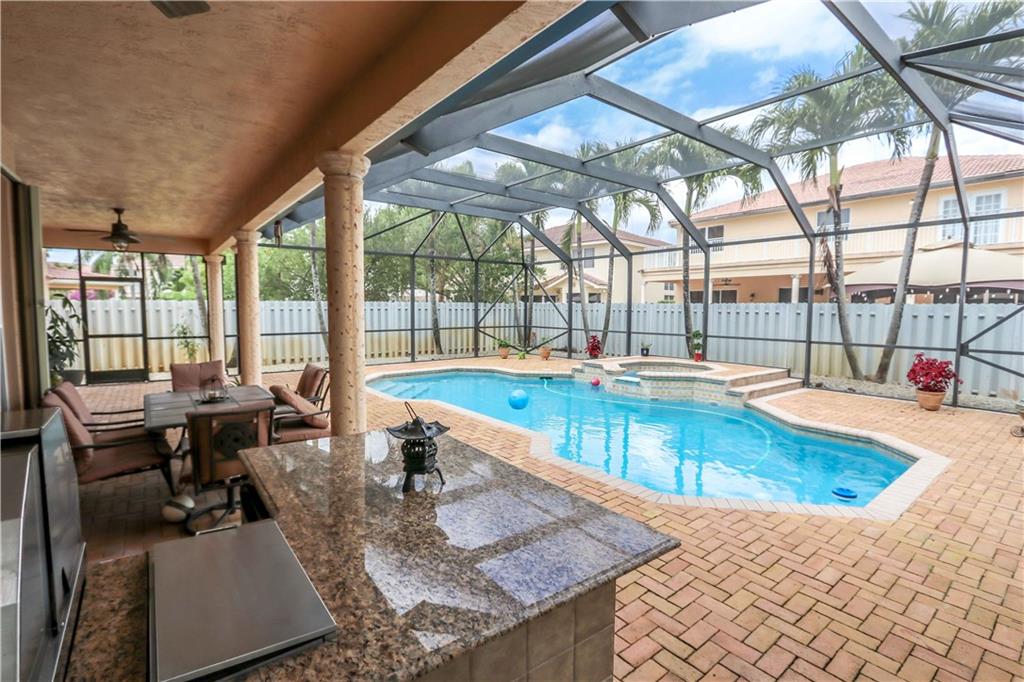 Gorgeous 4 bedroom 3.5 bath, 2-story totally remodeled pool home located on a cul-de-sac. This home features a beautiful iron and wood railing leading to the second floor. All new wood floors on stairs and upper level.This home features a gourmet kitchen with Granite Counters, large cooking island & stainless steel appliances. Tile flooring & crown molding throughout the living area. Large living room w/gorgeous French doors leading out to the spectacular pavered screened patio & pool w/ outdoor kitchen
