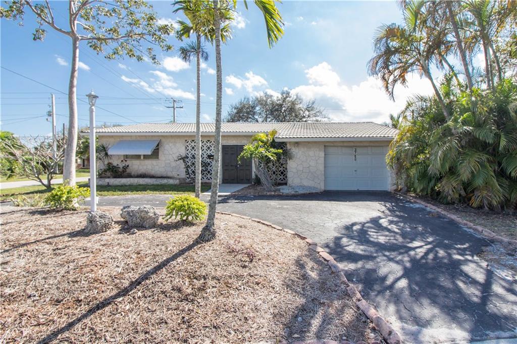 Great 3 bedroom/ 2 bath corner lot pool home in Hollywood Hills. This lovely home feature Remodeled kitchen w/ granite counters, Polished terrazzo floors with French doors through kitchen, living room and master bedroom also great size patio area with outdoor shower making this home perfect for entertaining. Corner lot. Beautiful tree lined street. 1 car garage... Circle driveway. Great location. The home shows great! Near shops, restaurants and highways.