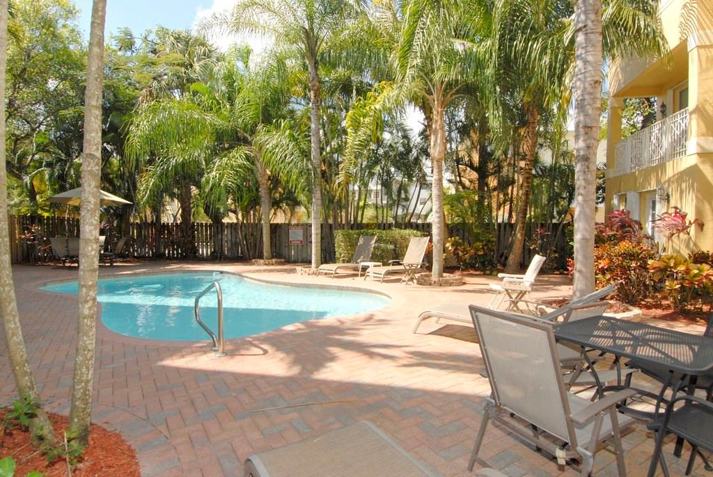 Las Olas hidden treasure! Such an Amazing setting as lush trees canopy the streets at this boutique complex. Nice open floorpan. Light and bright. Terracotta tile through out living area. Beautiful hardwood floors on stairwell and bedrooms. Master bedroom features 2 walk in closests. Second bedroom has it's own bathroom. Ground floor has a bonus room that can easily be used as 3rd bedroom or office. Newer A/C unit. Inside and Out. Accordion shutters. Beautiful, private pool area. Enjoy downtown and beach.